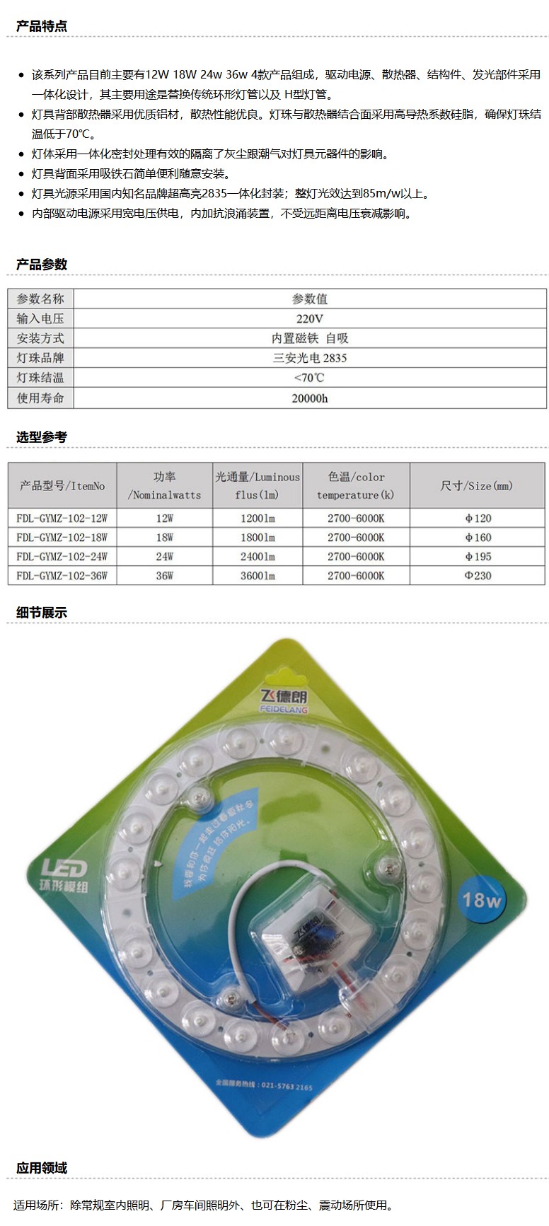 商品名称:飞德朗 吸顶灯模组,FDL-GYMZ-102-18W,白光,Φ160mm,单位:个