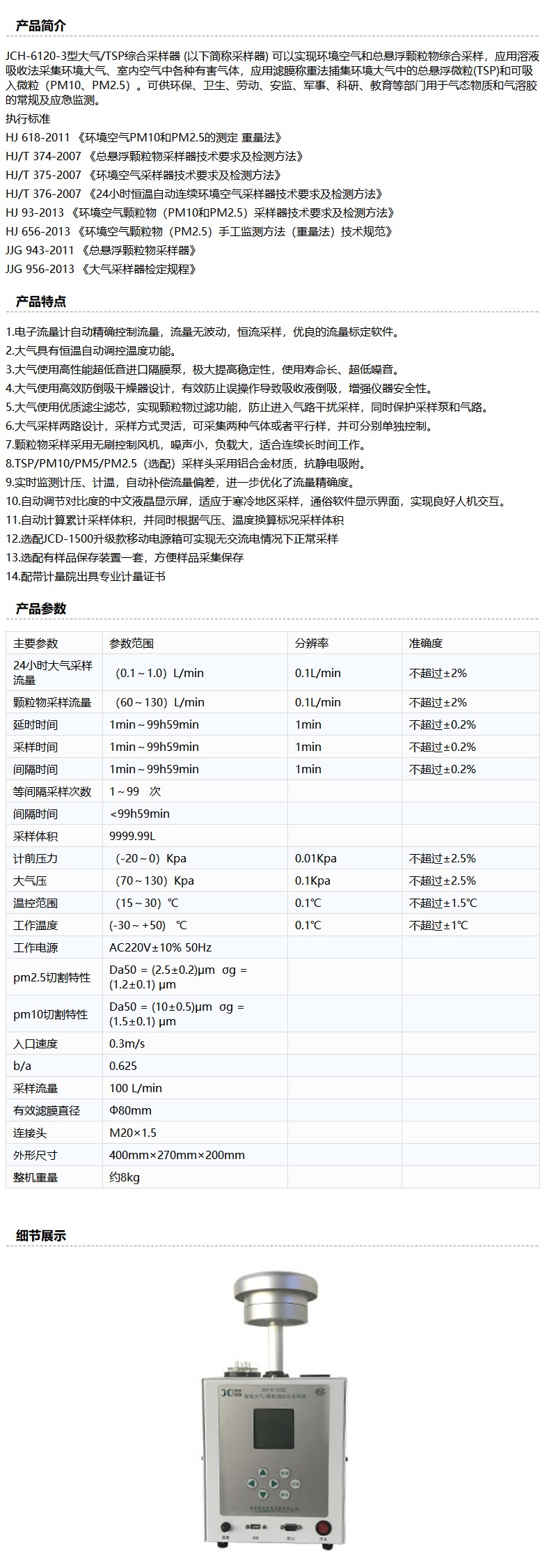 商品名称:聚创环保 智能24小时/TSP综合采样器,JCH-6120 D010401-03