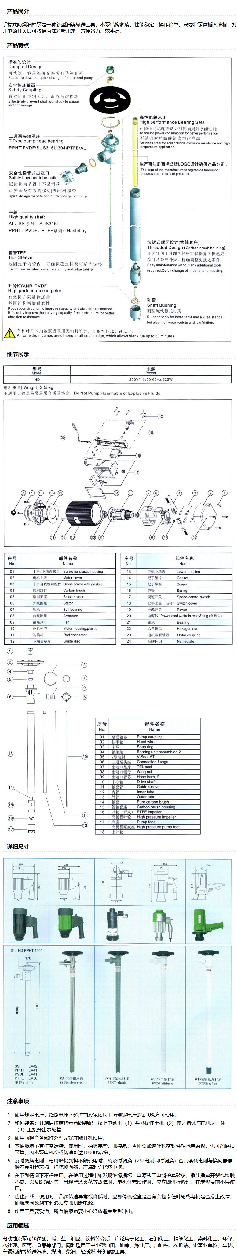 商品名称:标博/biaobo HD-PP PP工程塑料电动插桶泵,调速普通电机