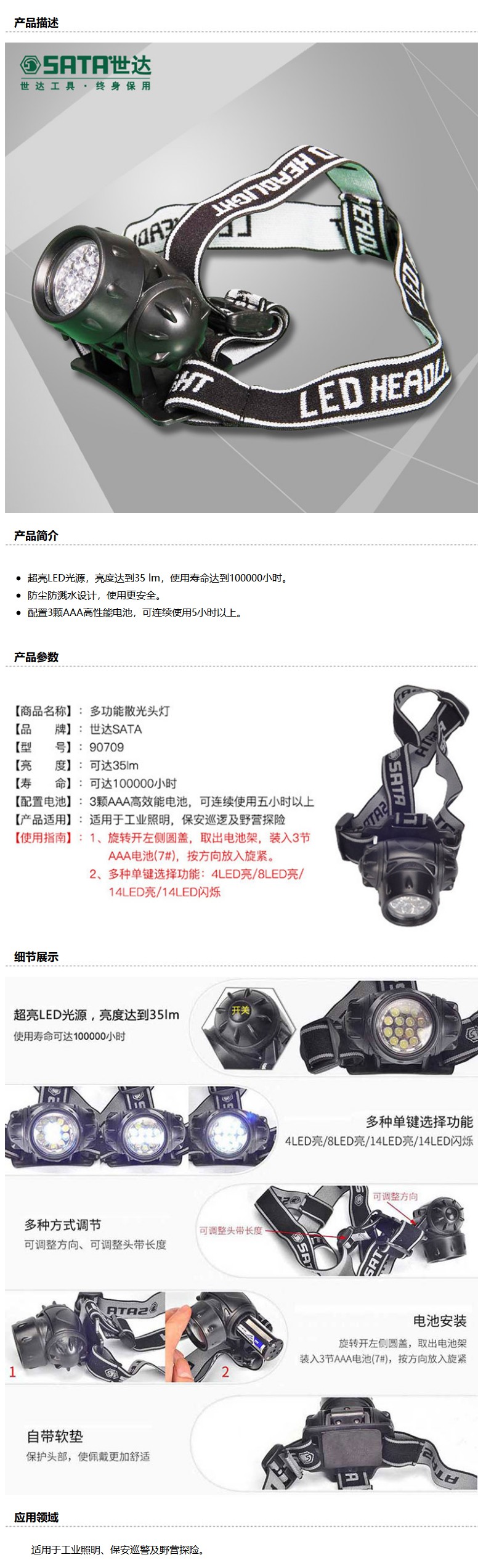 商品名称:世达 90709 多功能散光头灯,LED 单位:个