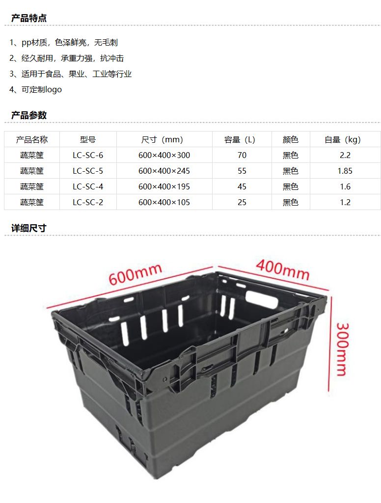 商品名称:力禾 蔬菜筐,尺寸:600×400×300mm,LC-SC-6,黑色