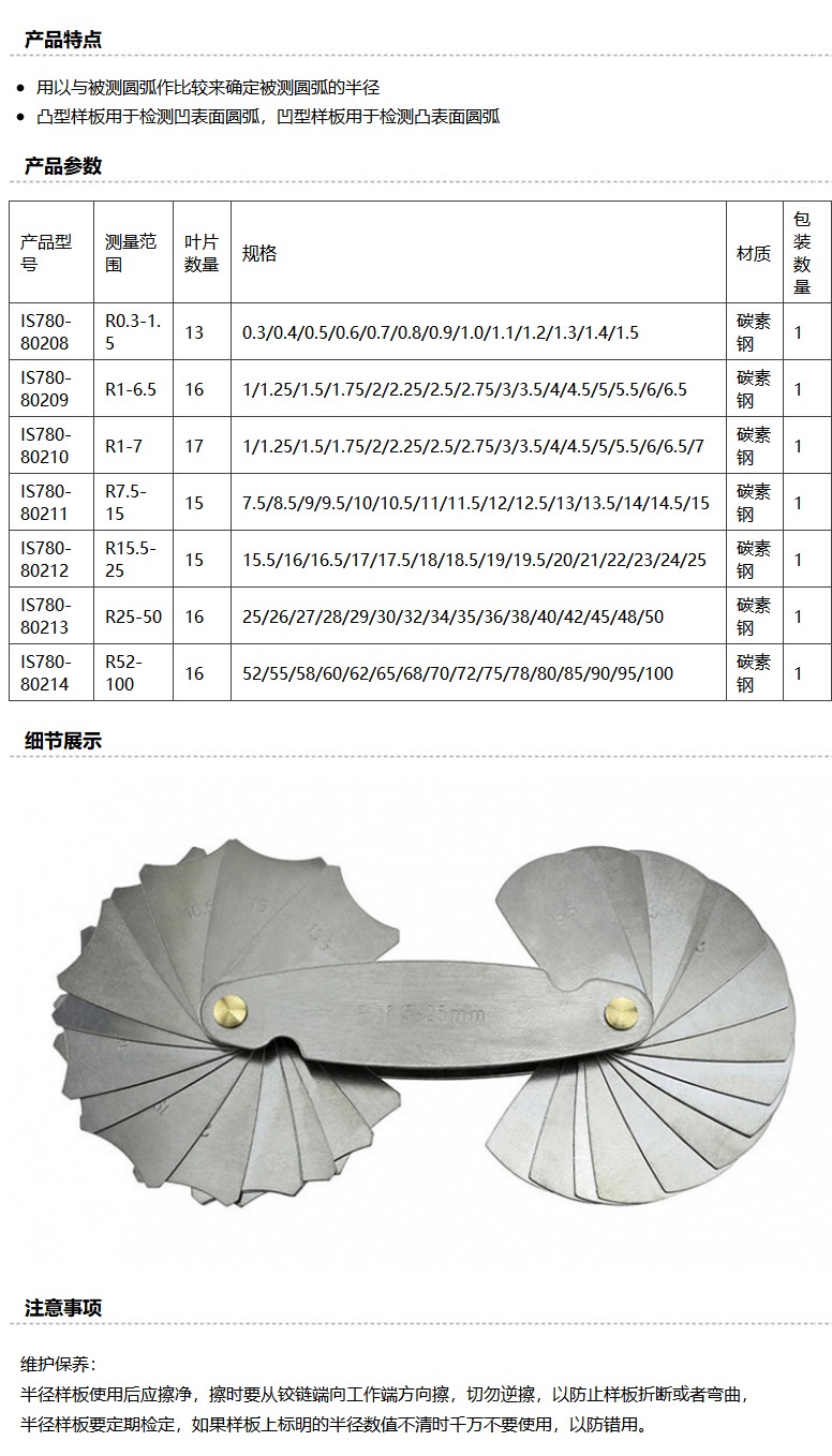 商品名称:INVOUS 精密半径规,R52-100mm,IS780-80214