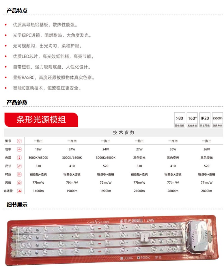 商品名称:开尔照明 LED改造板模组,24W,一拖四,磁铁吸附,白光,42cm,1900lm,单位:个