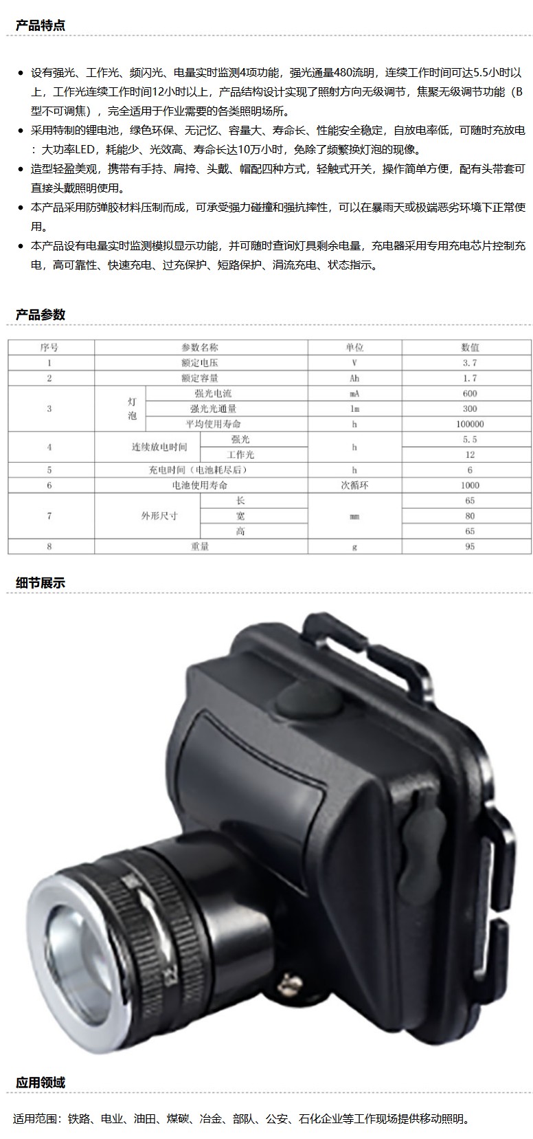 商品名称:沈阳亮典 微型防爆调焦头灯,3W白光,YLD520,头戴方式,单位:个