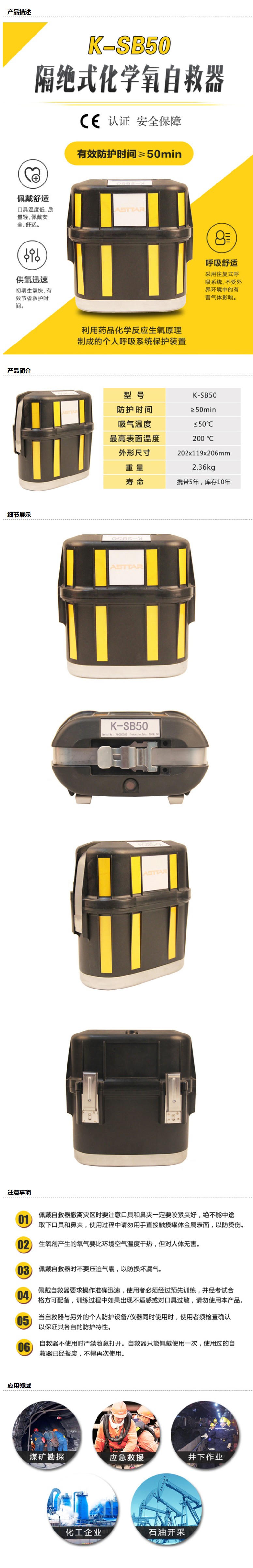 商品名称:斯达ASTTAR 隔绝式化学氧自救器,K-SB50,CE认证,单位:个