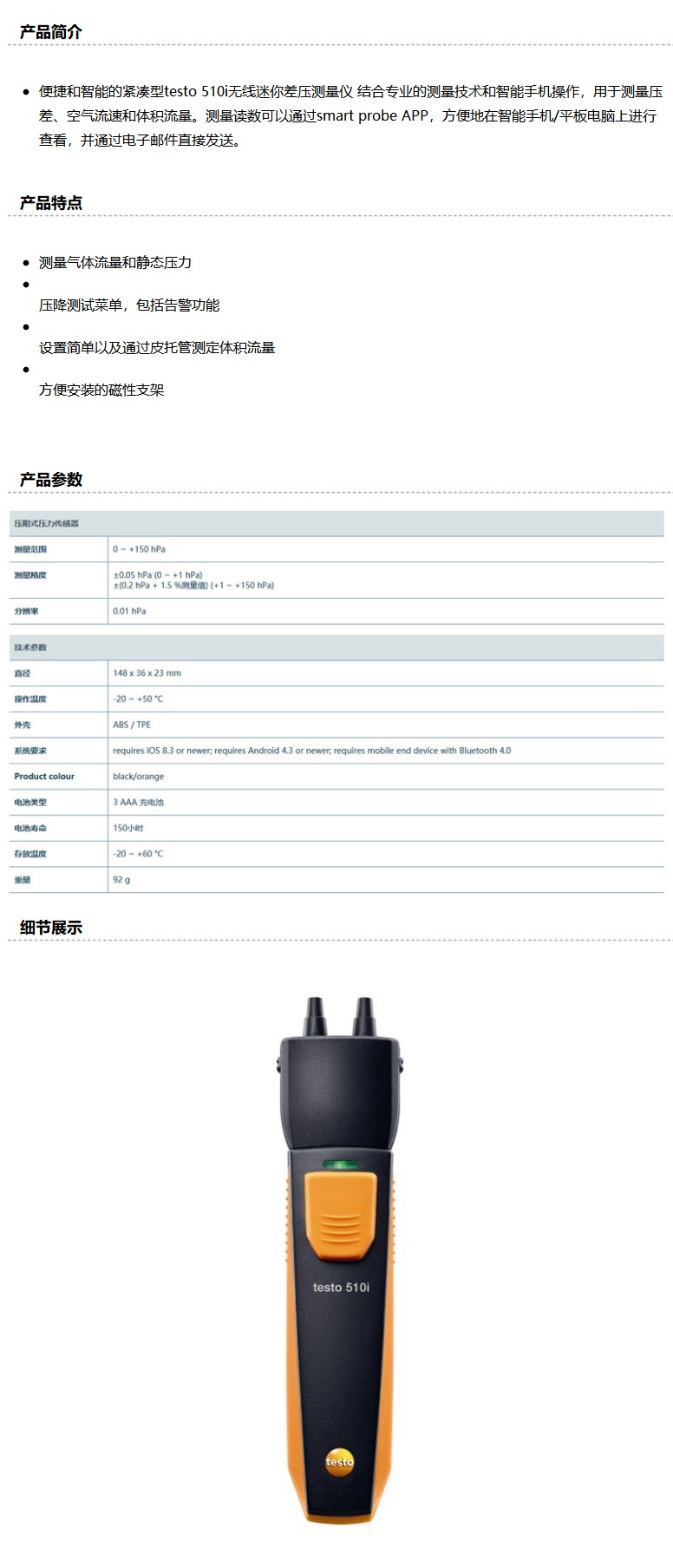 商品名称:德图/Testo 无线迷你差压测量仪,testo 510i 订货号 0560 1510