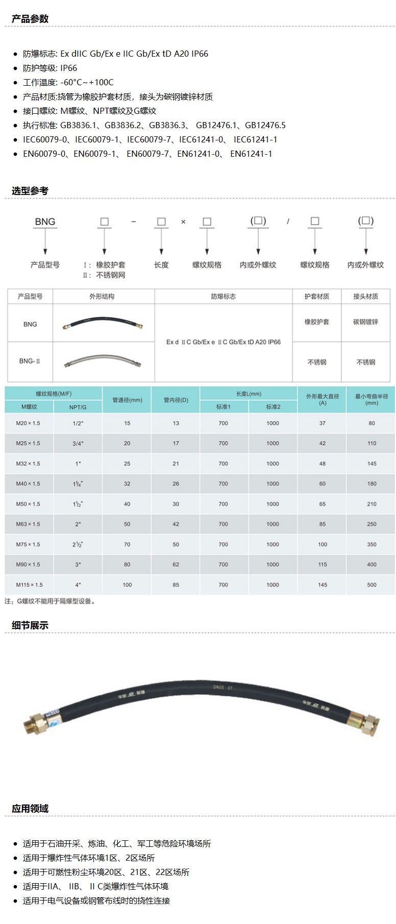 商品名称:华荣 防爆挠性管,BNGI-DN40*1000/G1.1/2(内外),橡胶护套两端碳钢接头,1米/根