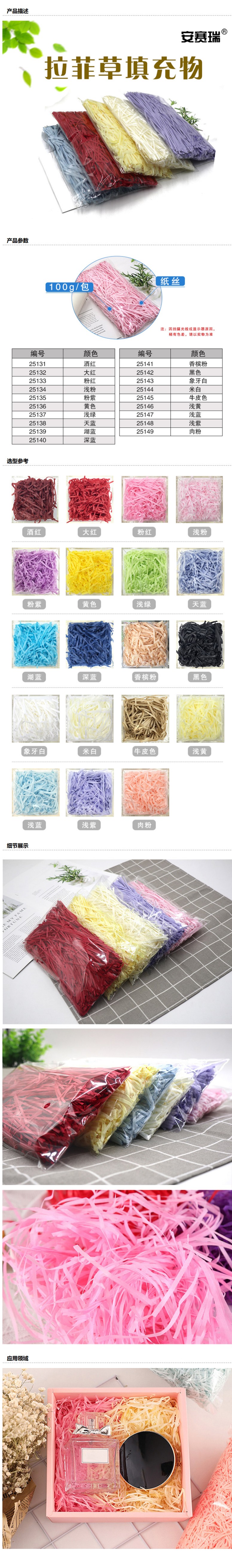 商品名称:安赛瑞 拉菲草填充物,纸丝,100g/包,26#浅黄(包),25146