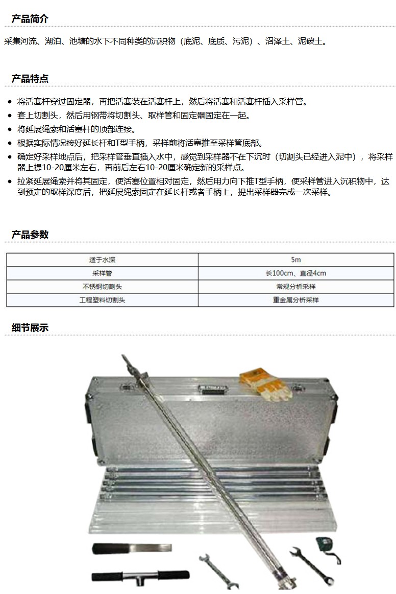 商品名称:聚创环保 活塞式柱状采泥器,JC-801A A030302