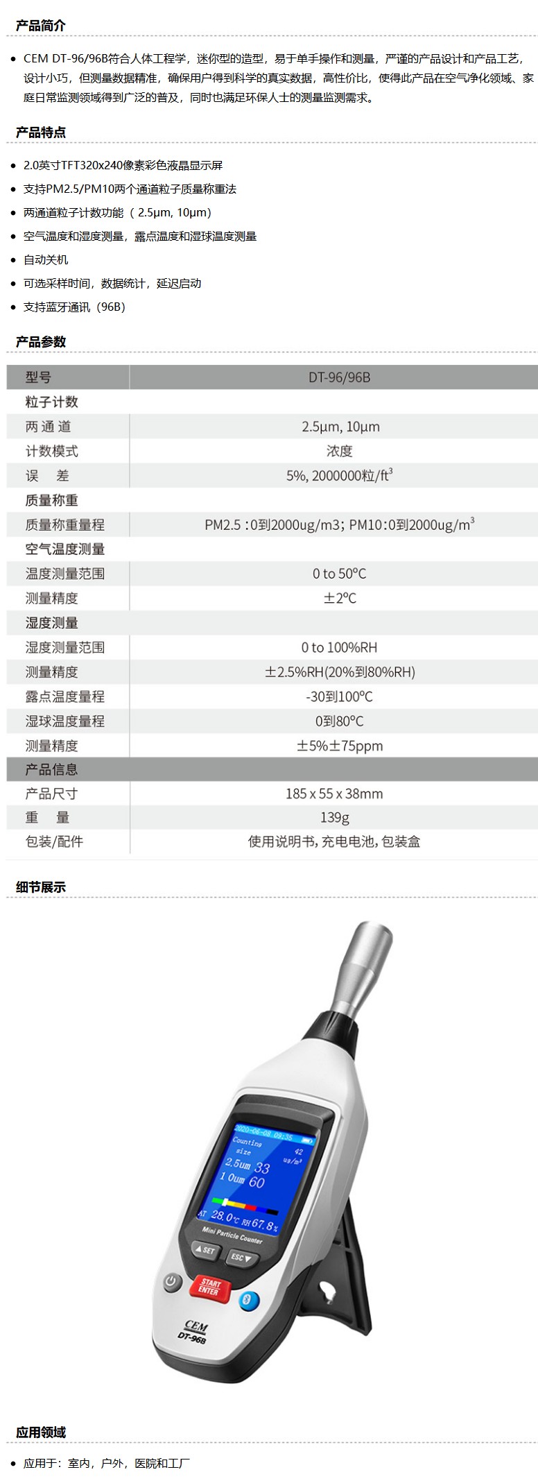 商品名称:华盛昌CEM 粒子计数器,DT-96B