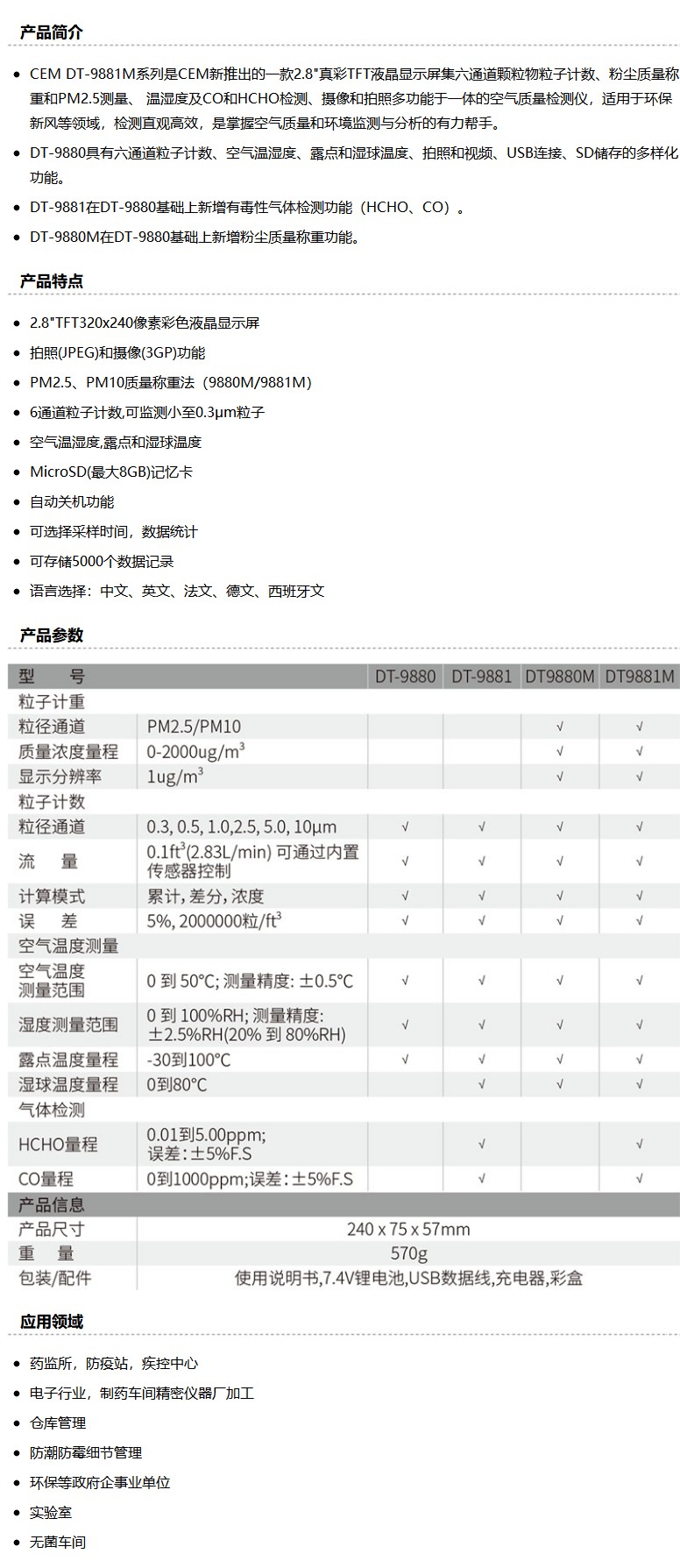 商品名称:华盛昌CEM 四合一粒子计数器,DT-9881