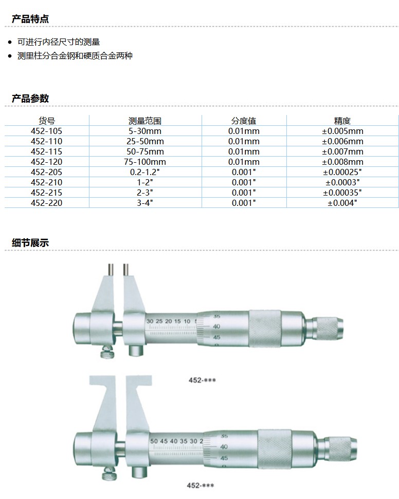 商品名称:桂量 内测千分尺,5-30,452-105(含第三方检测)