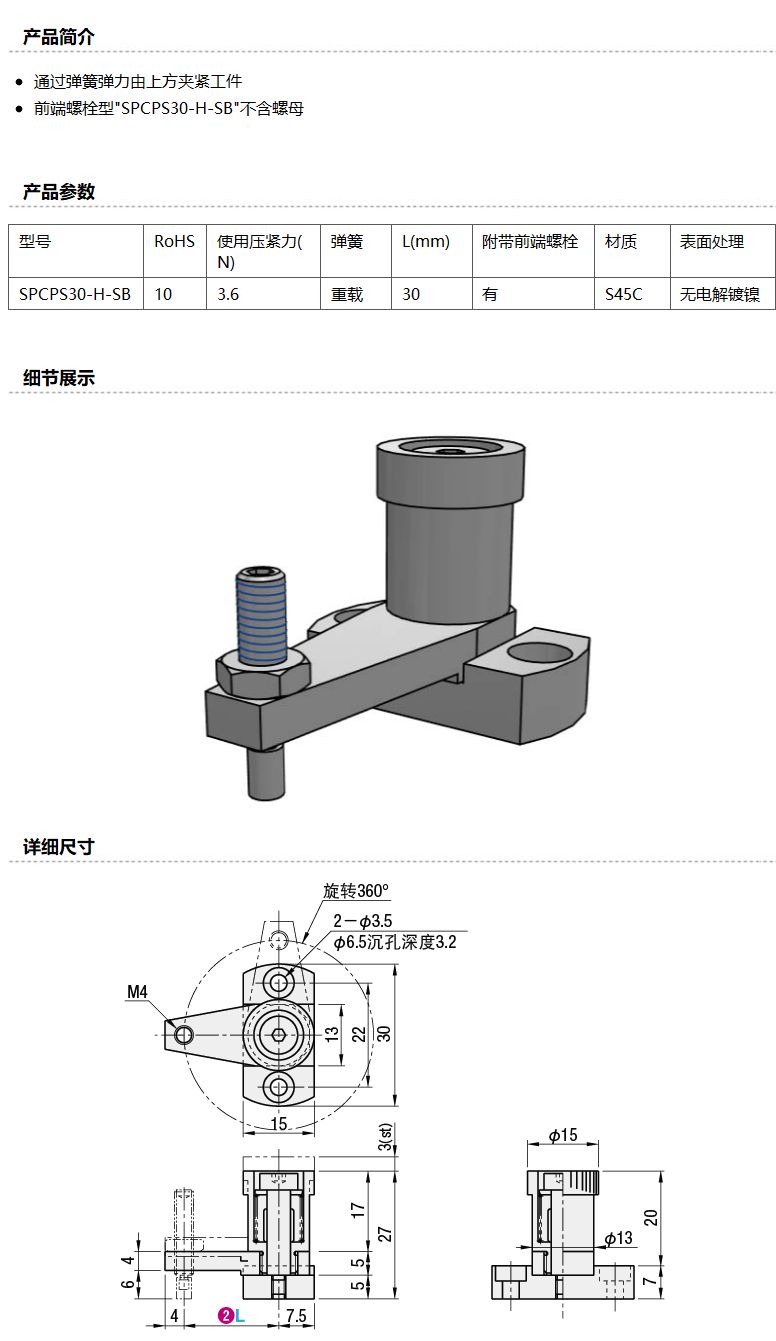 商品名称:米思米 弹簧固定夹,SPCPS30-H-SB
