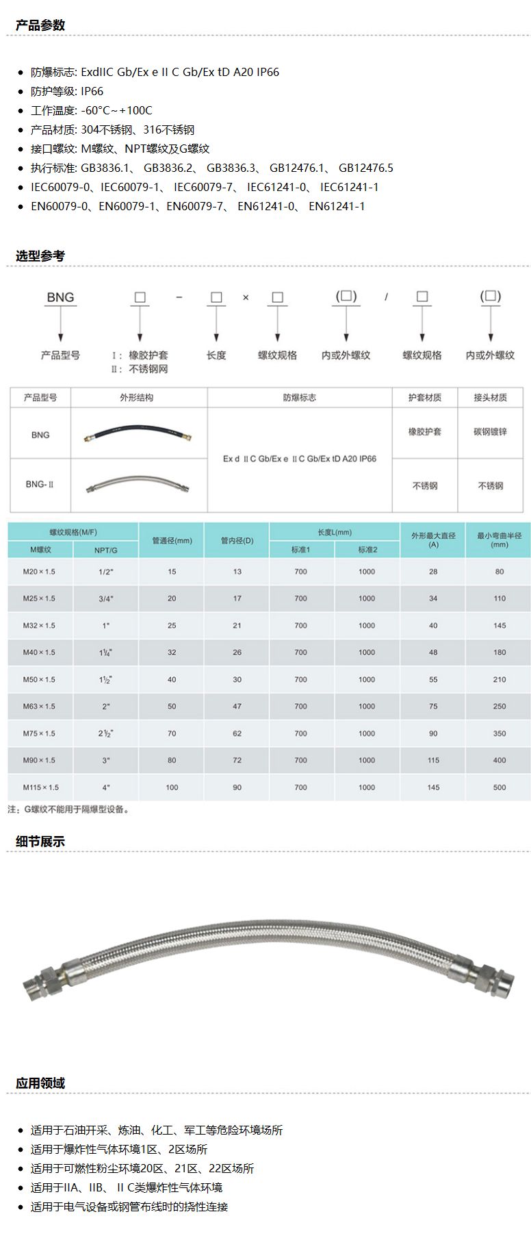 商品名称:华荣 防爆挠性管,BNGII-DN15*1000/G1/2(内外)SS304,两端SS304接头,1米/根