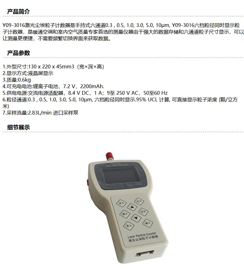 商品名称:聚创环保 激光尘埃粒子计数器,Y09-3016 C030201