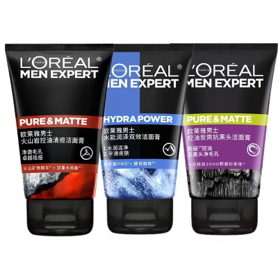 欧莱雅男士洗面奶100克*3组合(火山/抗黑头/深层/水能)(只发江浙沪)