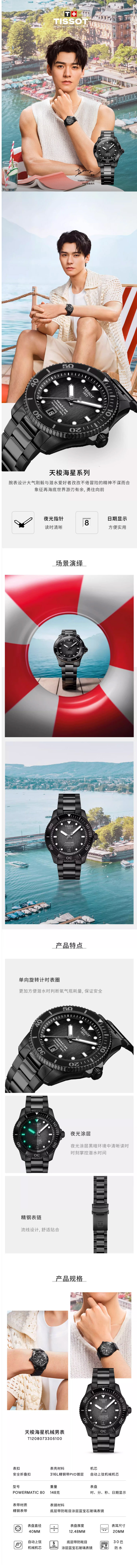 商品名称:TISSOT天梭 海星1000系列俊朗黑海星机械男表T120.807.33.051.0(单位1块) 黑色