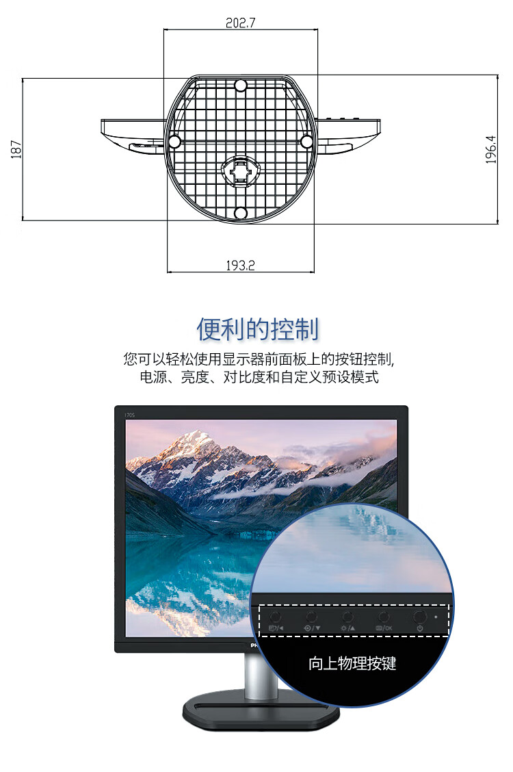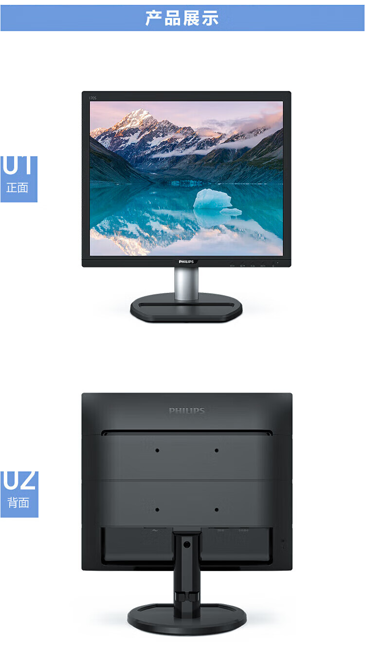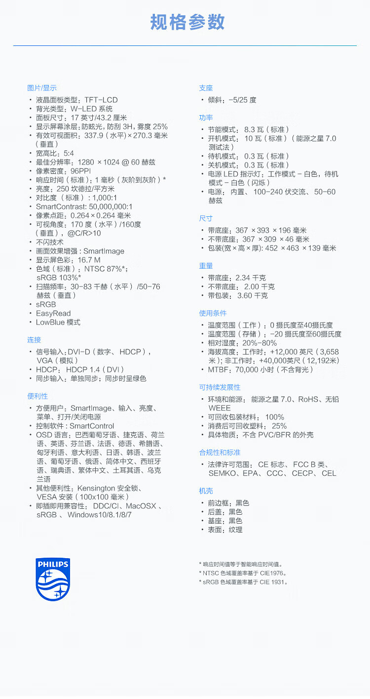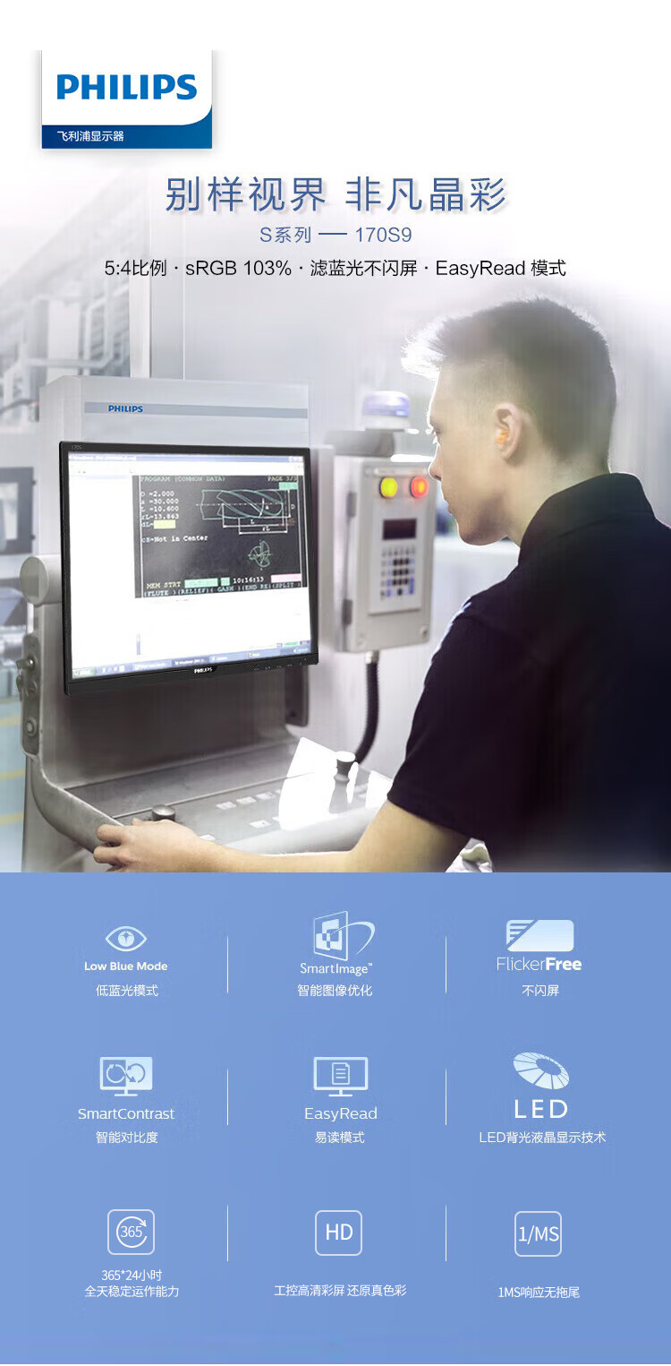 商品名称:飞利浦电脑显示器170S9/93 17英寸 5:4正屏方屏 防眩光低蓝光 支持壁挂/台 黑色