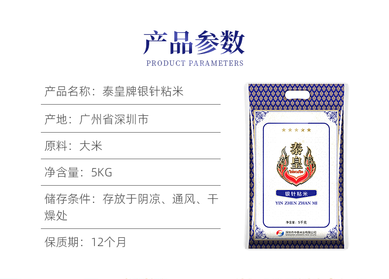 商品名称:泰皇银针粘米5KG(单位:袋) 蓝色