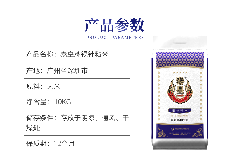 商品名称:泰皇银针粘米10KG/袋 蓝色