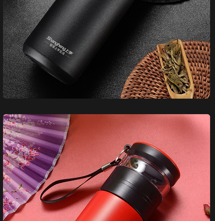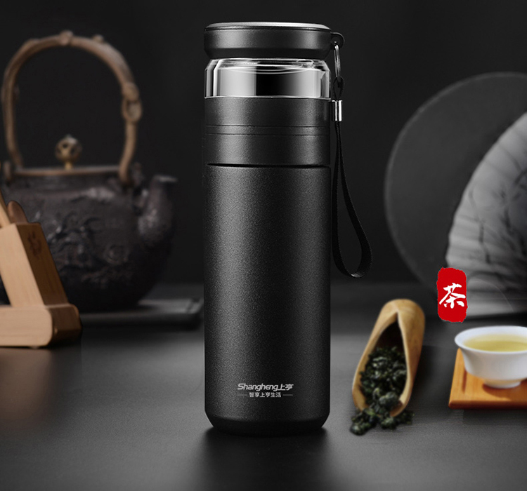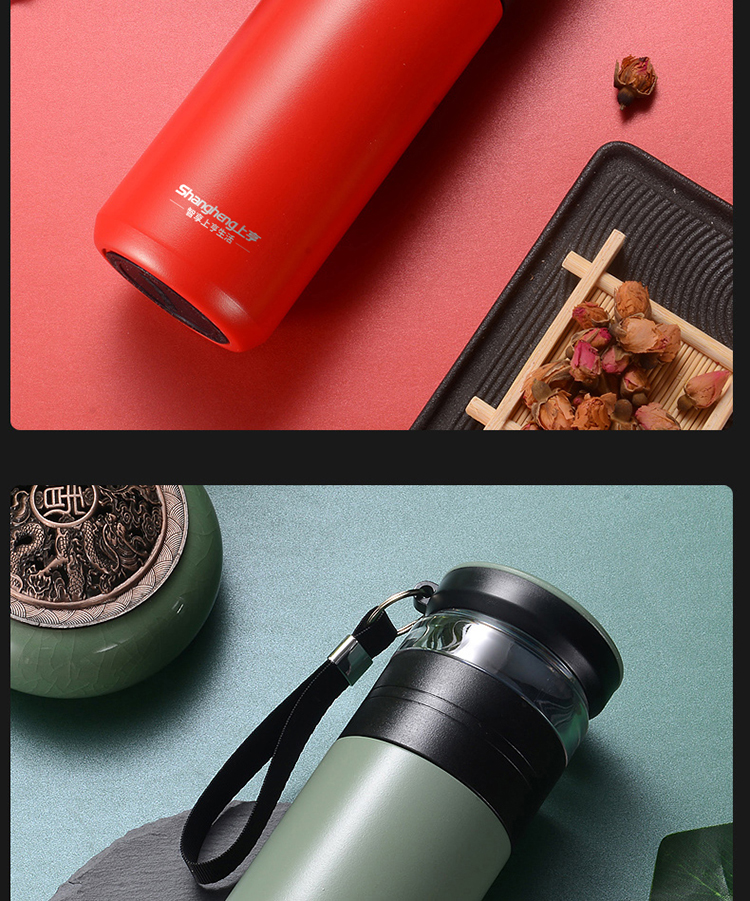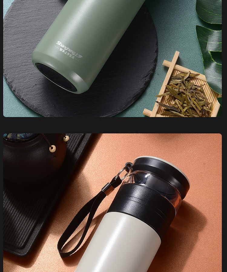 商品名称:上亨智能保温杯304不锈钢大容量喝水杯子男女士户外泡茶杯茶水分离杯SHZH-CFB008 个 灰绿色