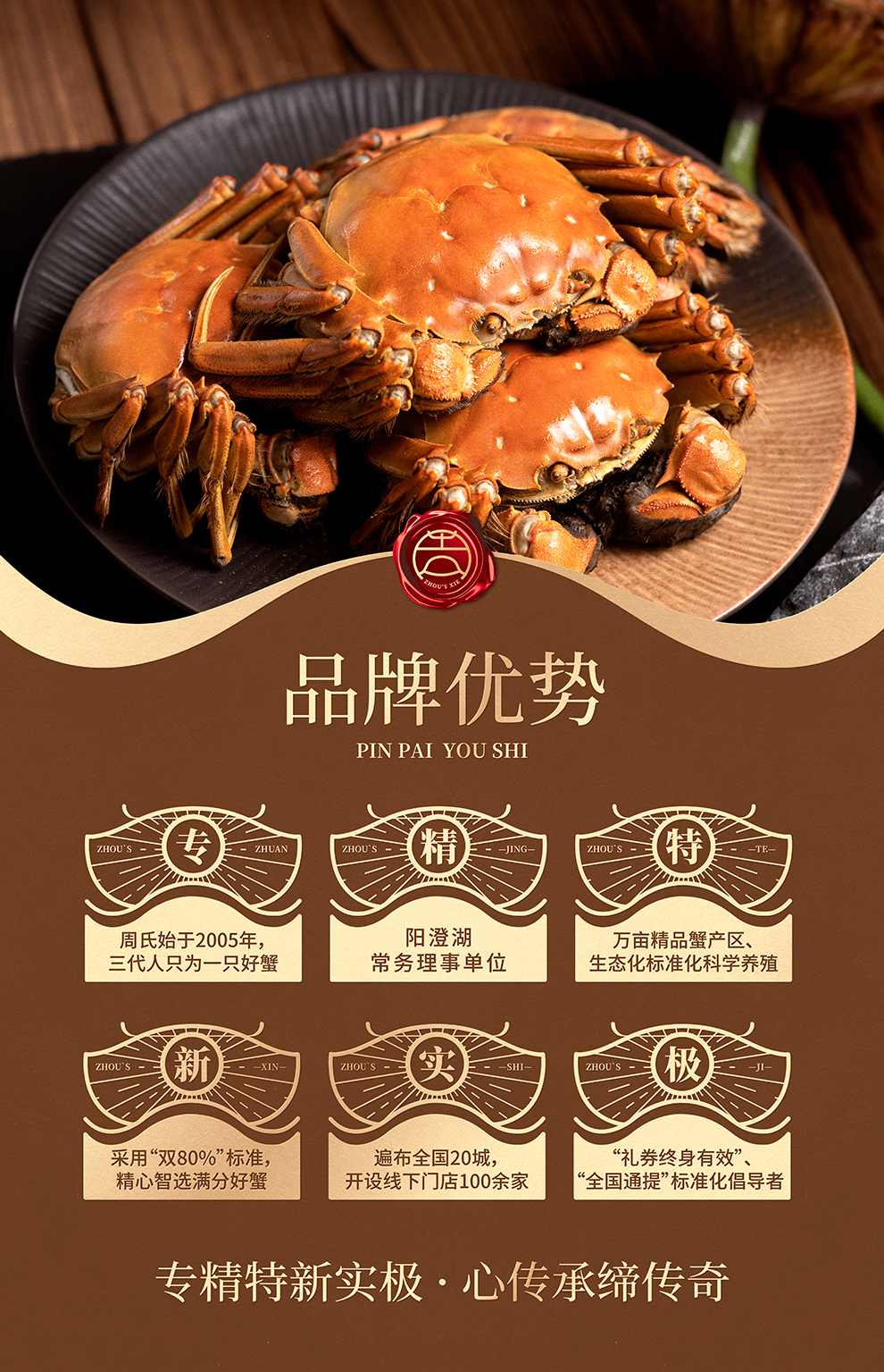 商品名称:周氏大闸蟹B款-1388型提货卡公蟹3.7两/4只 母蟹2.7两/4只 单位:张 莓果色