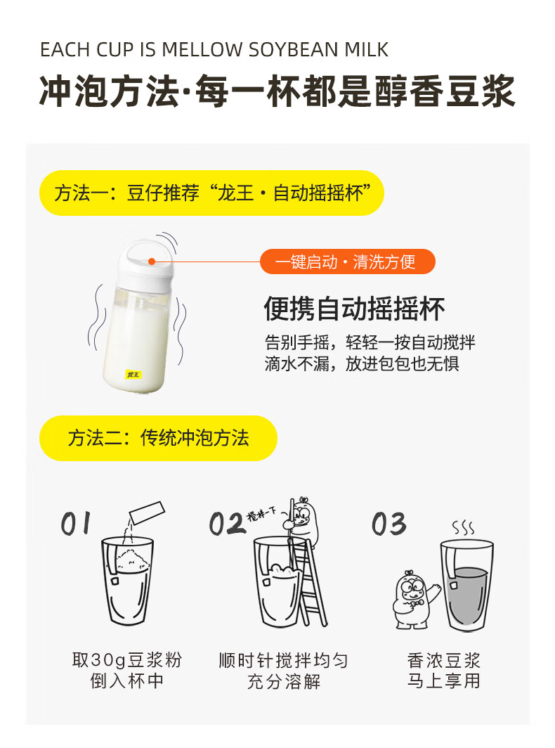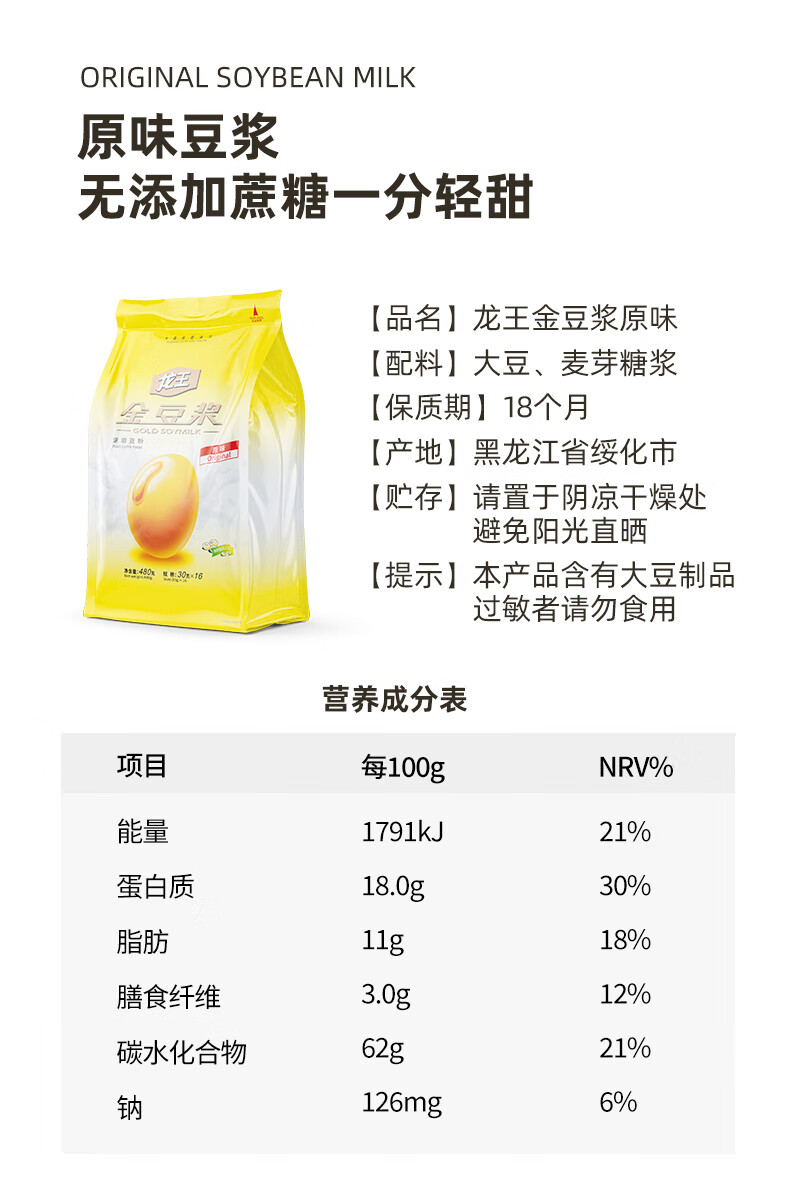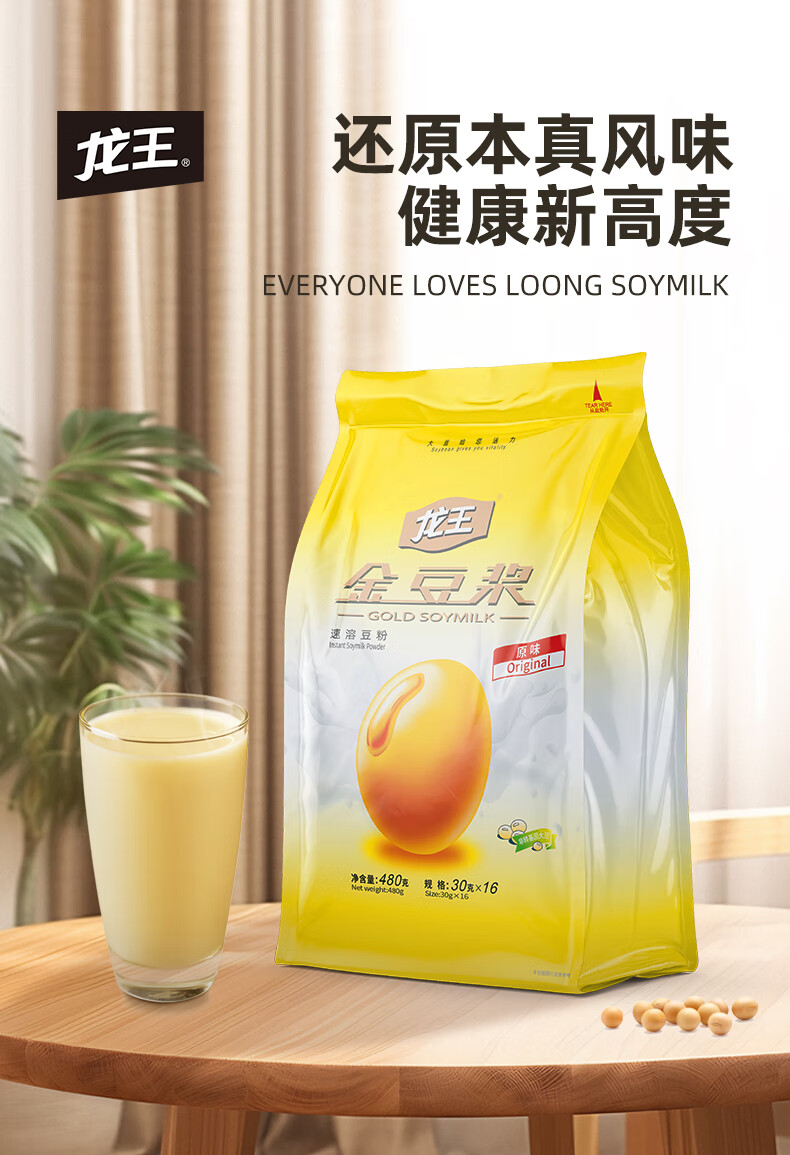 商品名称:龙王金豆浆粉原味480g/袋 纯豆浆高蛋白质营养谷物早餐 480g*1袋原味(单位:袋) 黄色