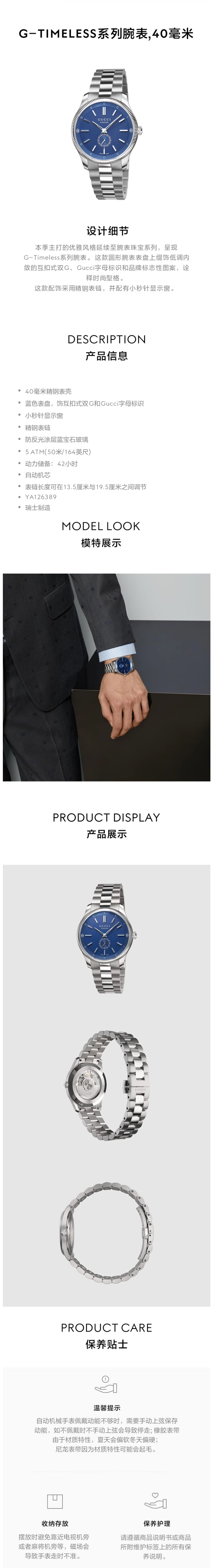 商品名称:古驰GUCCI G-Timeless系列机械男性手表40毫米YA126389(单位:1块) 蓝色