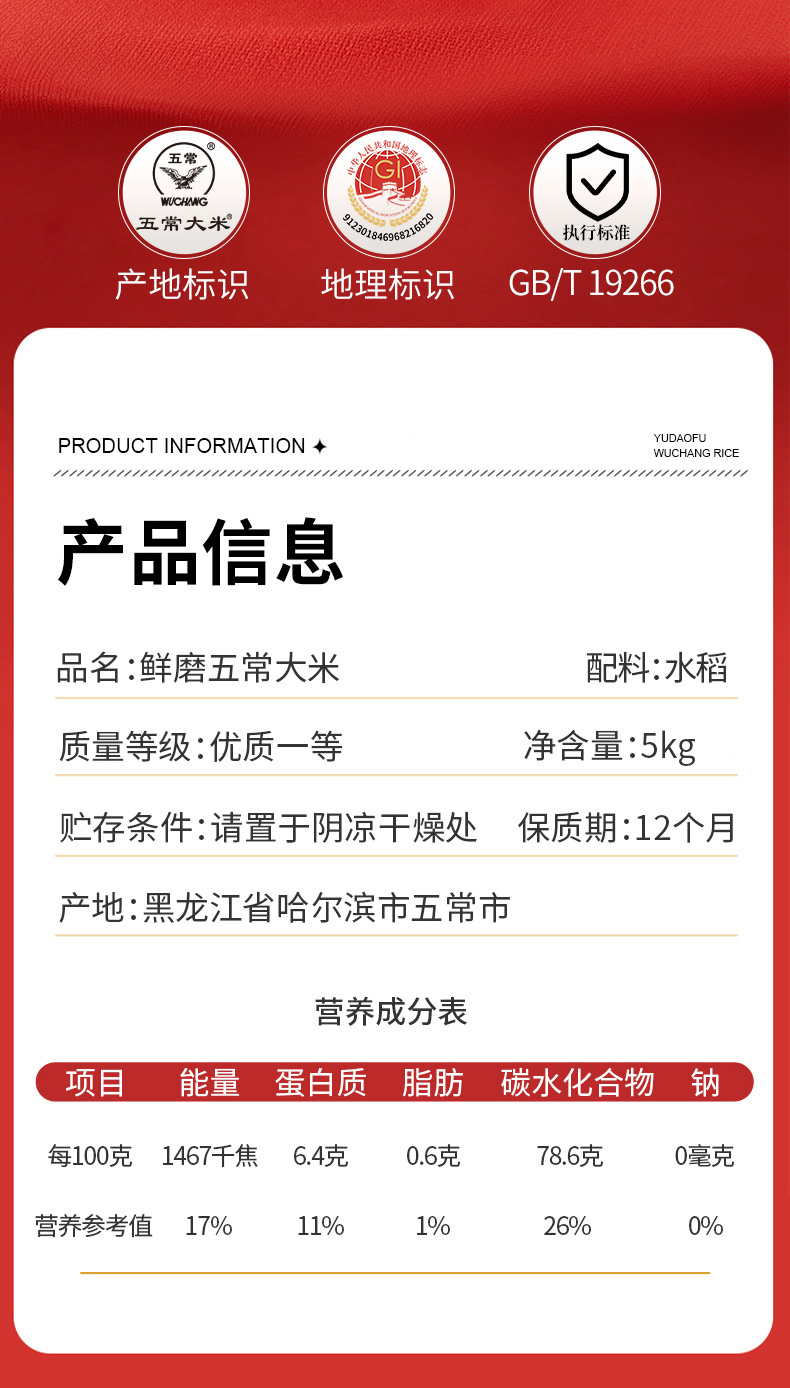 商品名称:裕道府鲜磨五常大米5kg/袋 5kg/袋