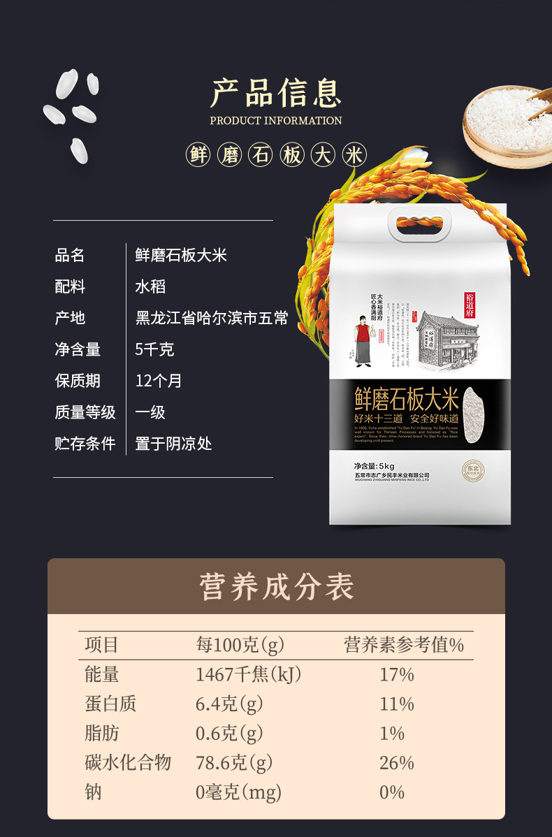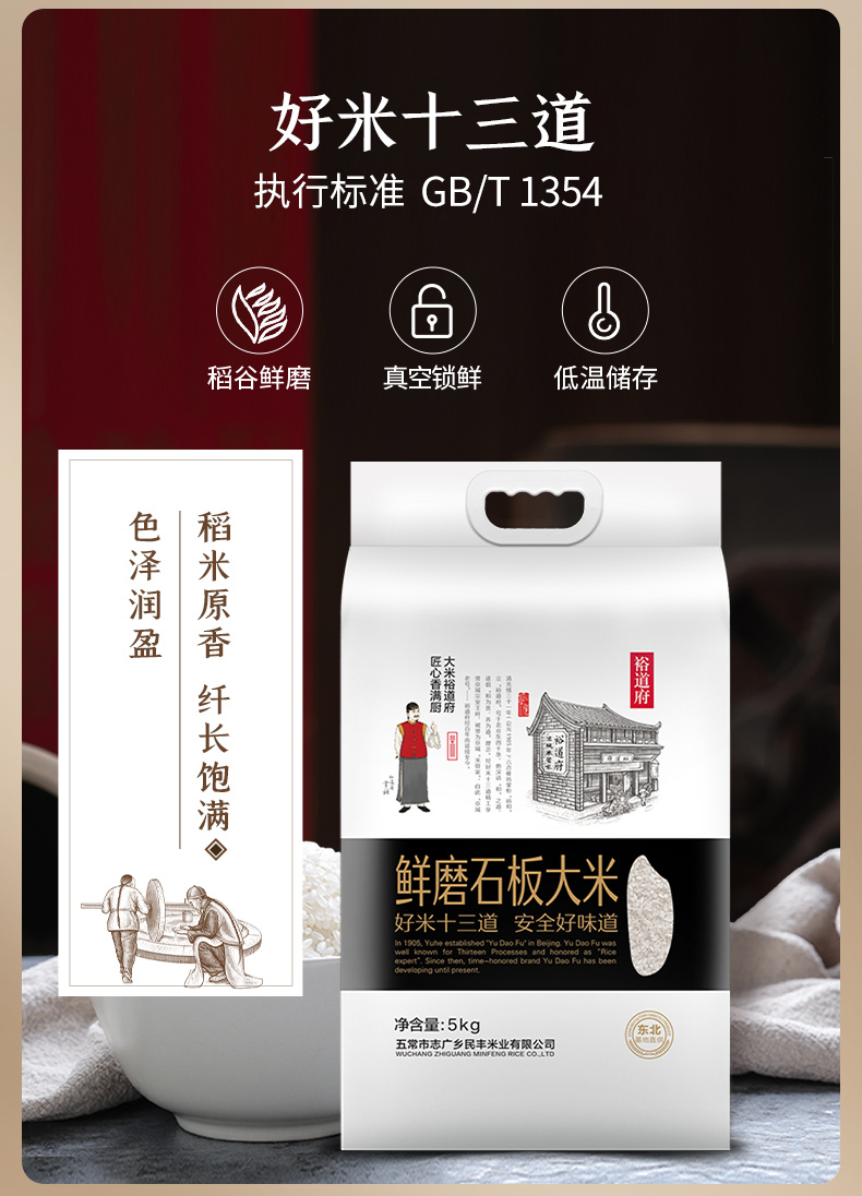 商品名称:裕道府鲜磨石板大米5kg/袋 5kg/袋
