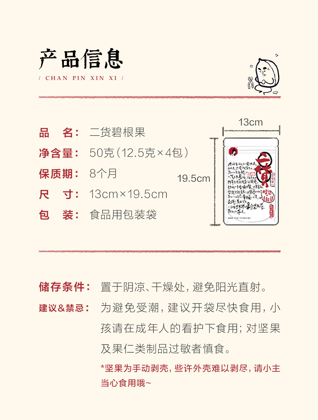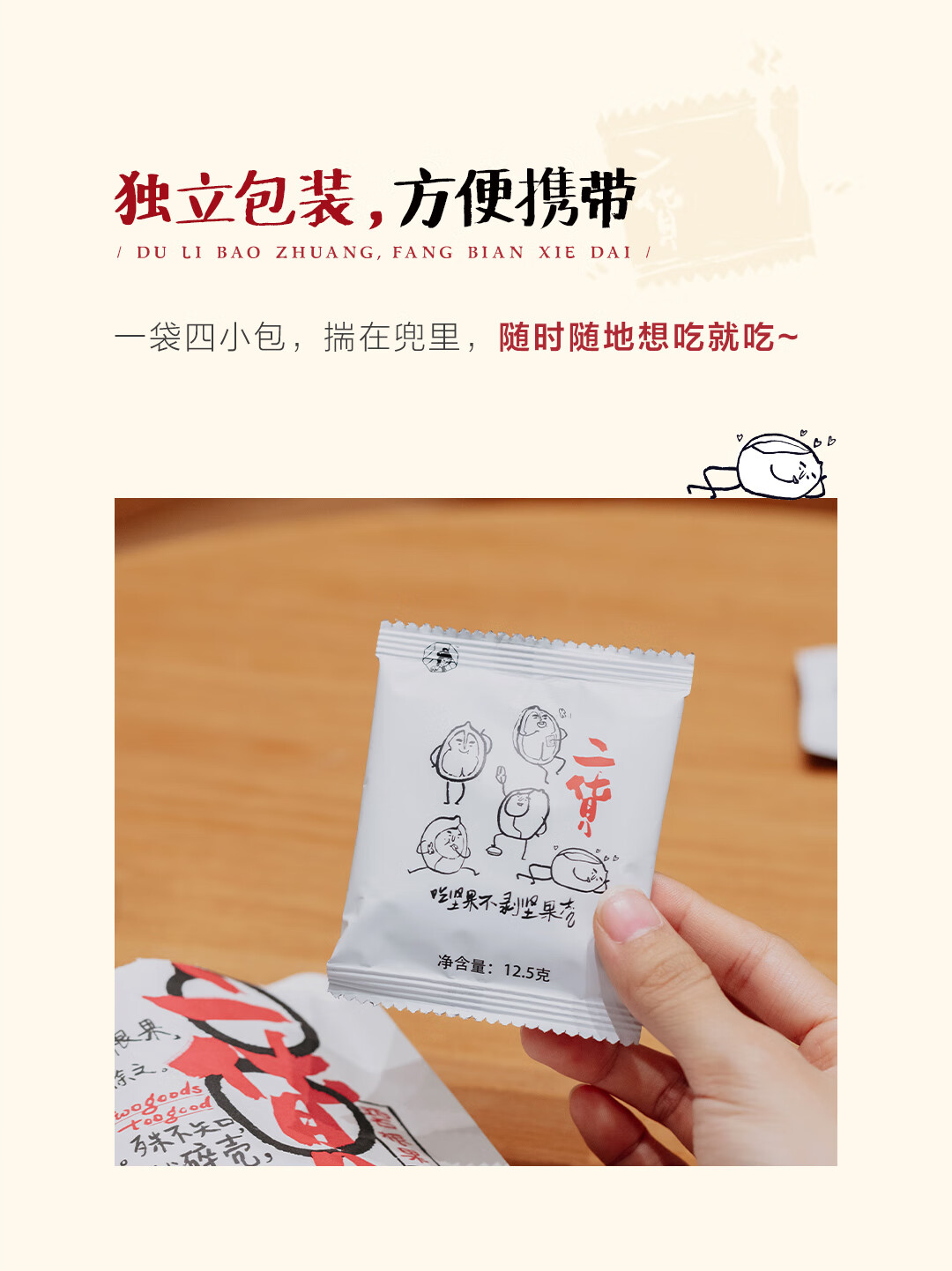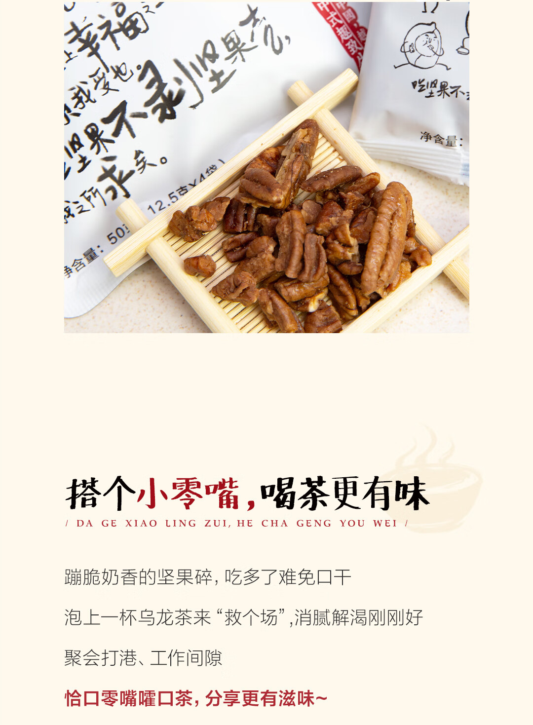 商品名称:茶颜悦色二货香脆碧根果仁50g/袋(12.5g*4小包)*3袋(单位:组) 混色