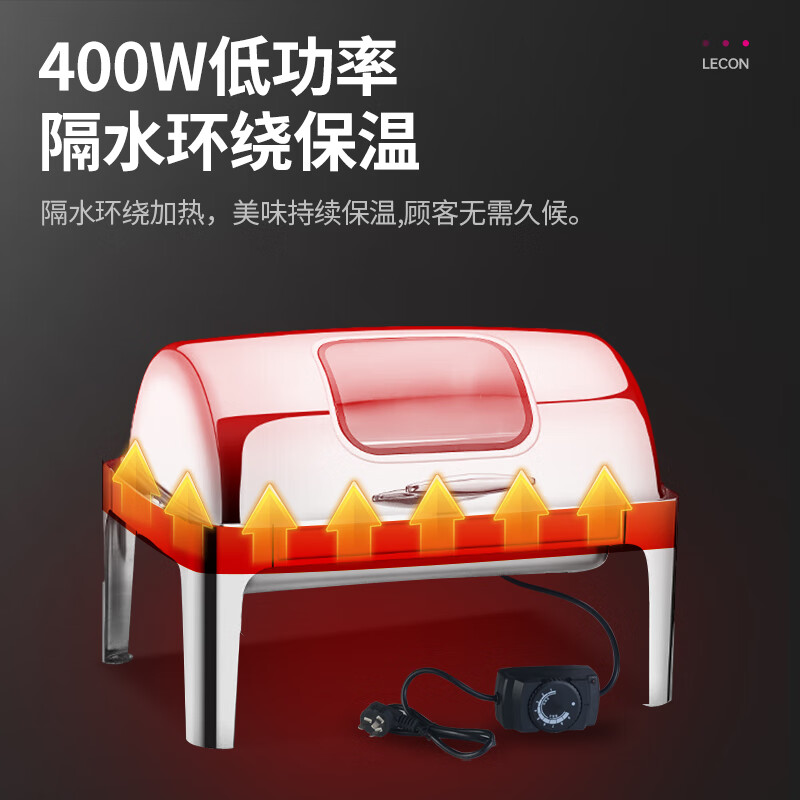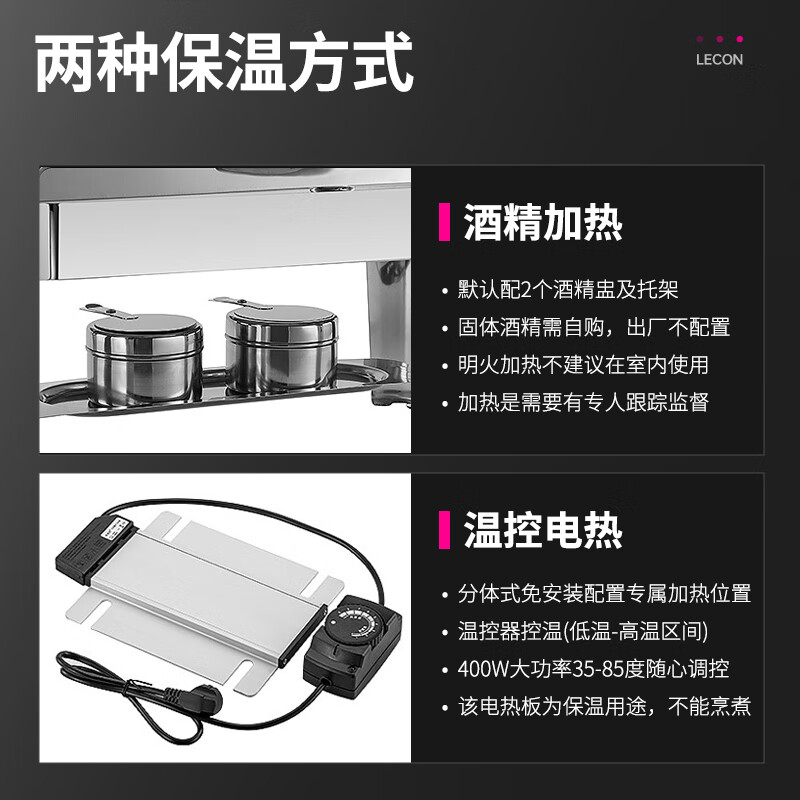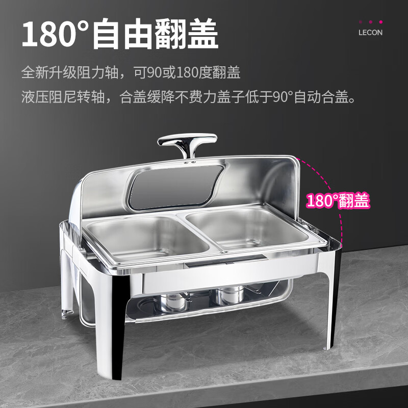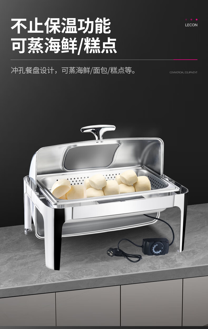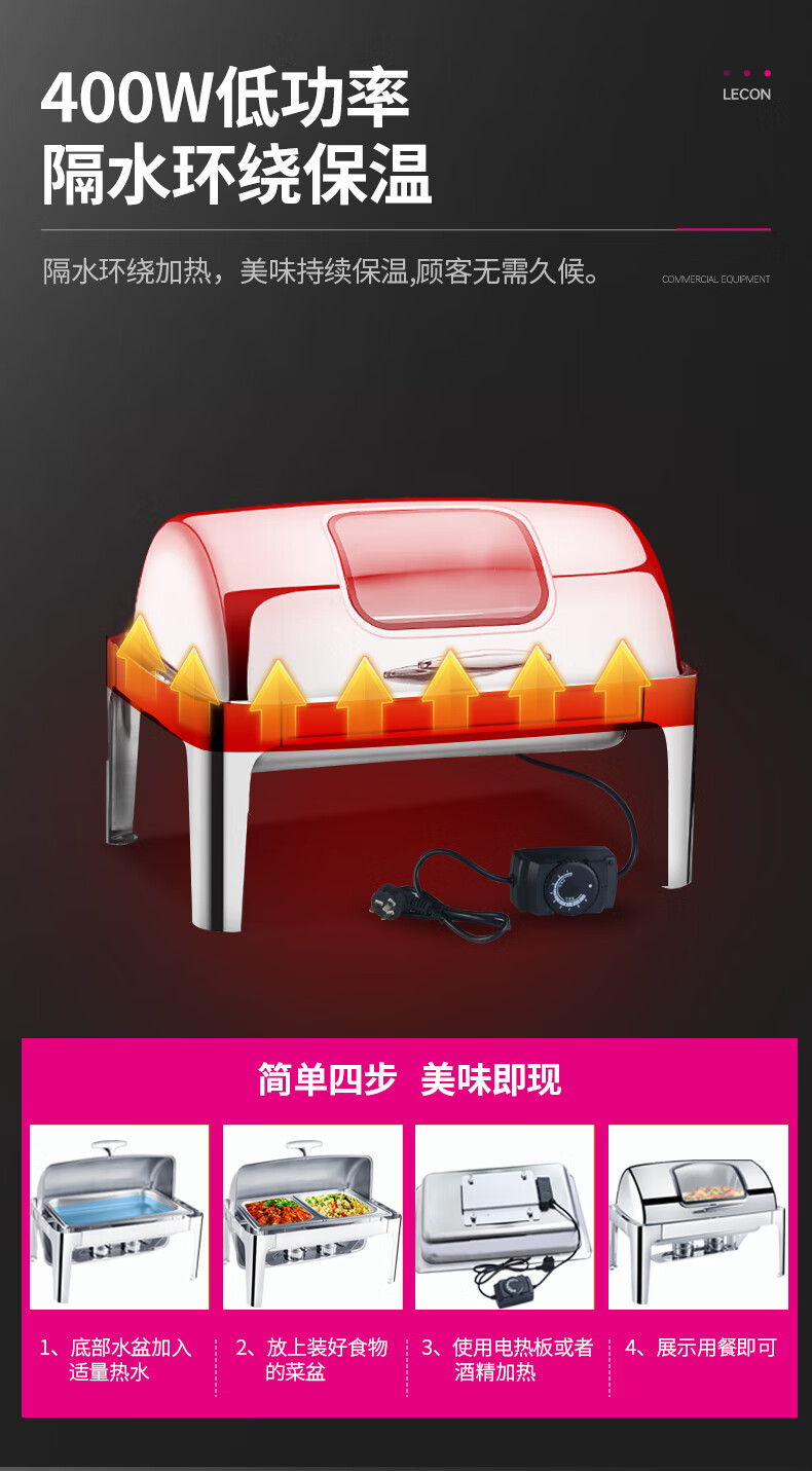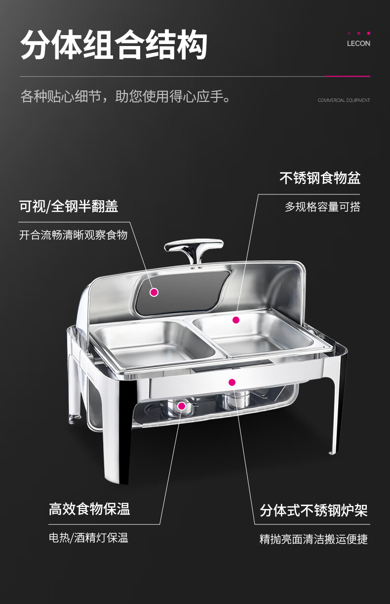 商品名称:乐创(lecon)自助餐保温炉 翻盖可视自助餐炉 三格加深13.5升/电加热 LC-723KS-2台 不锈钢色
