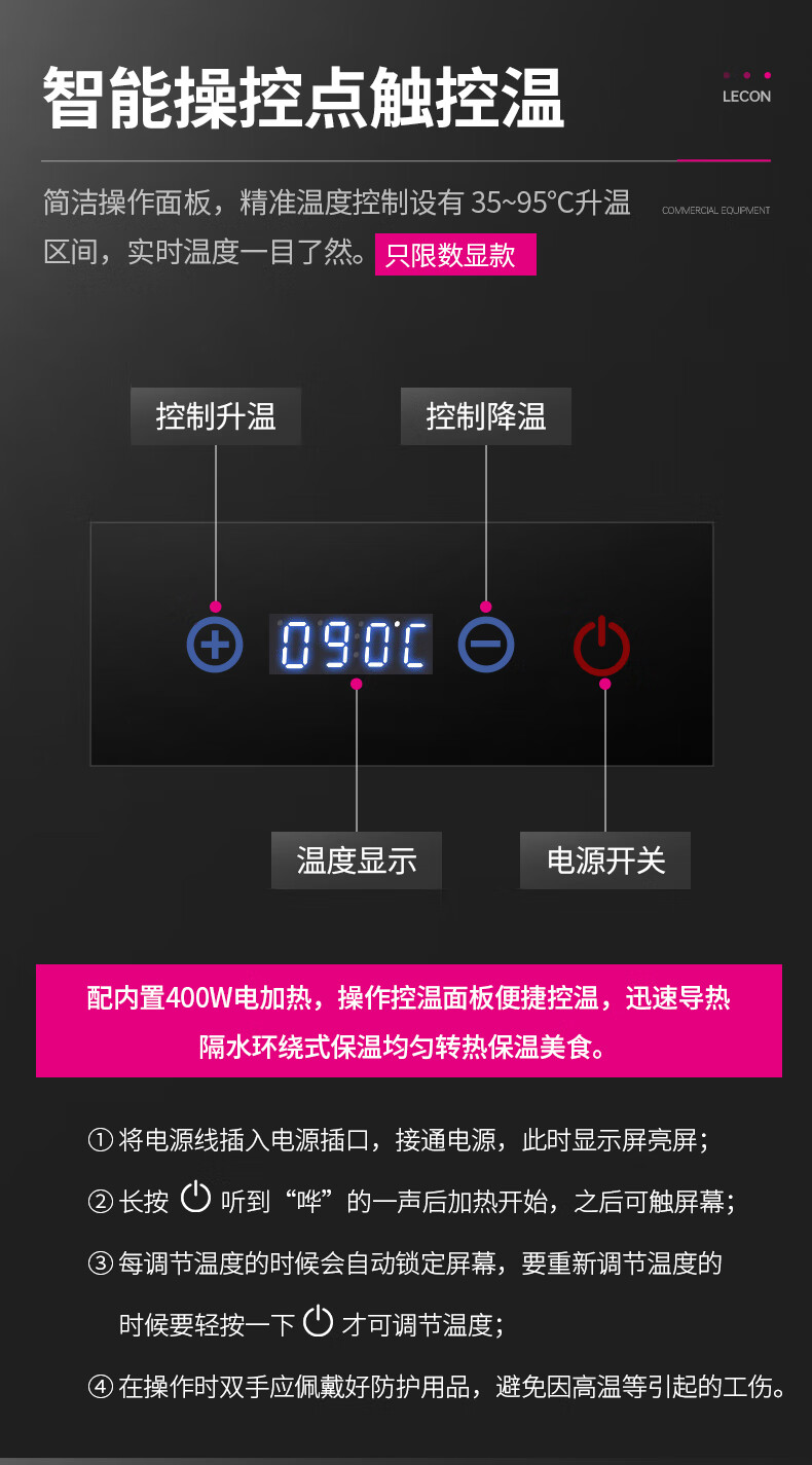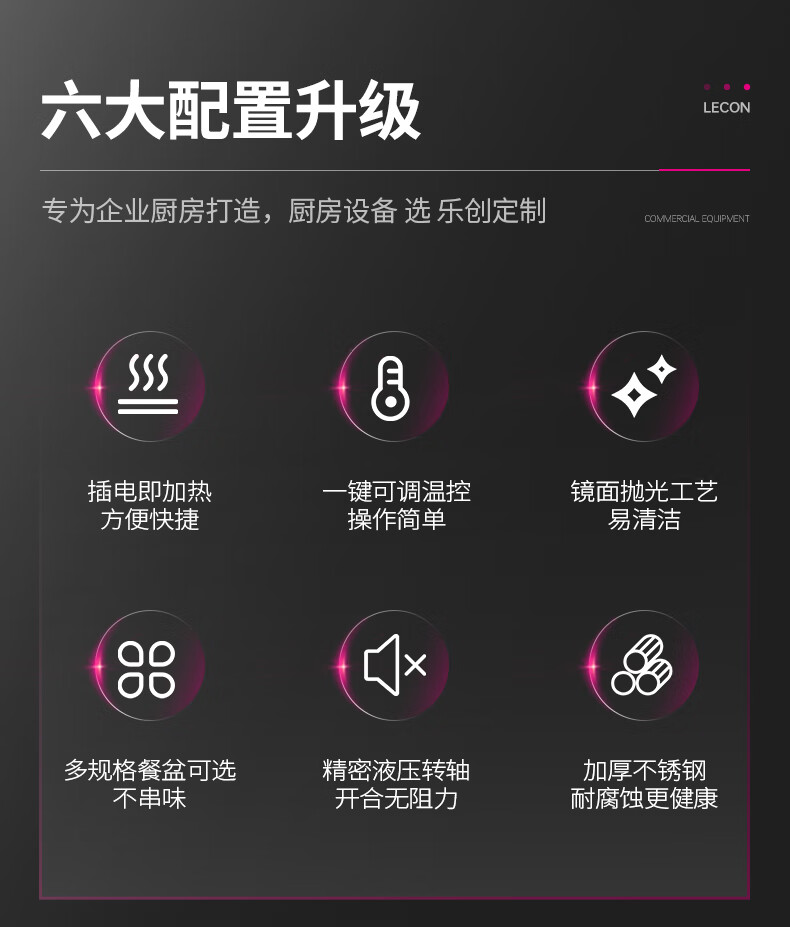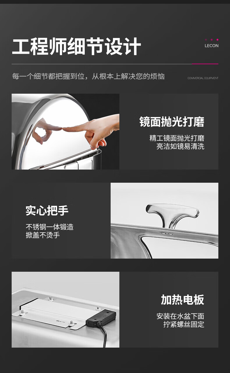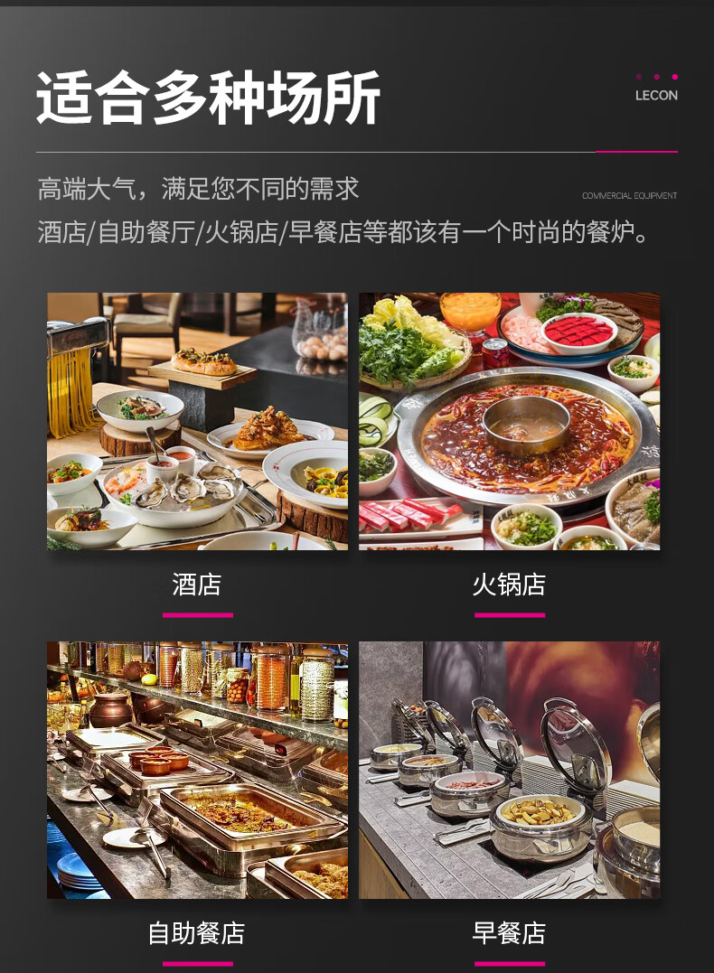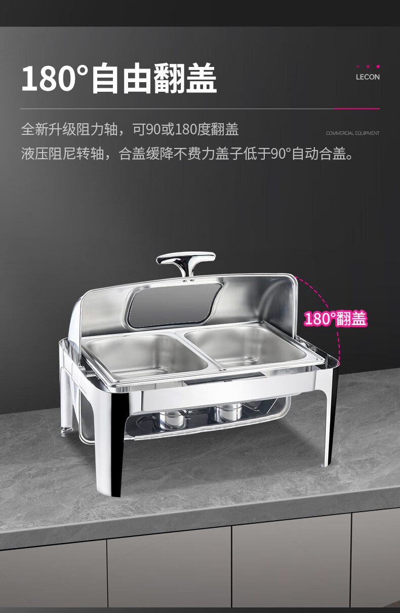 商品名称:乐创(lecon)自助餐保温炉 翻盖可视自助餐炉 三格加深13.5升/电加热 LC-723KS-2台 不锈钢色
