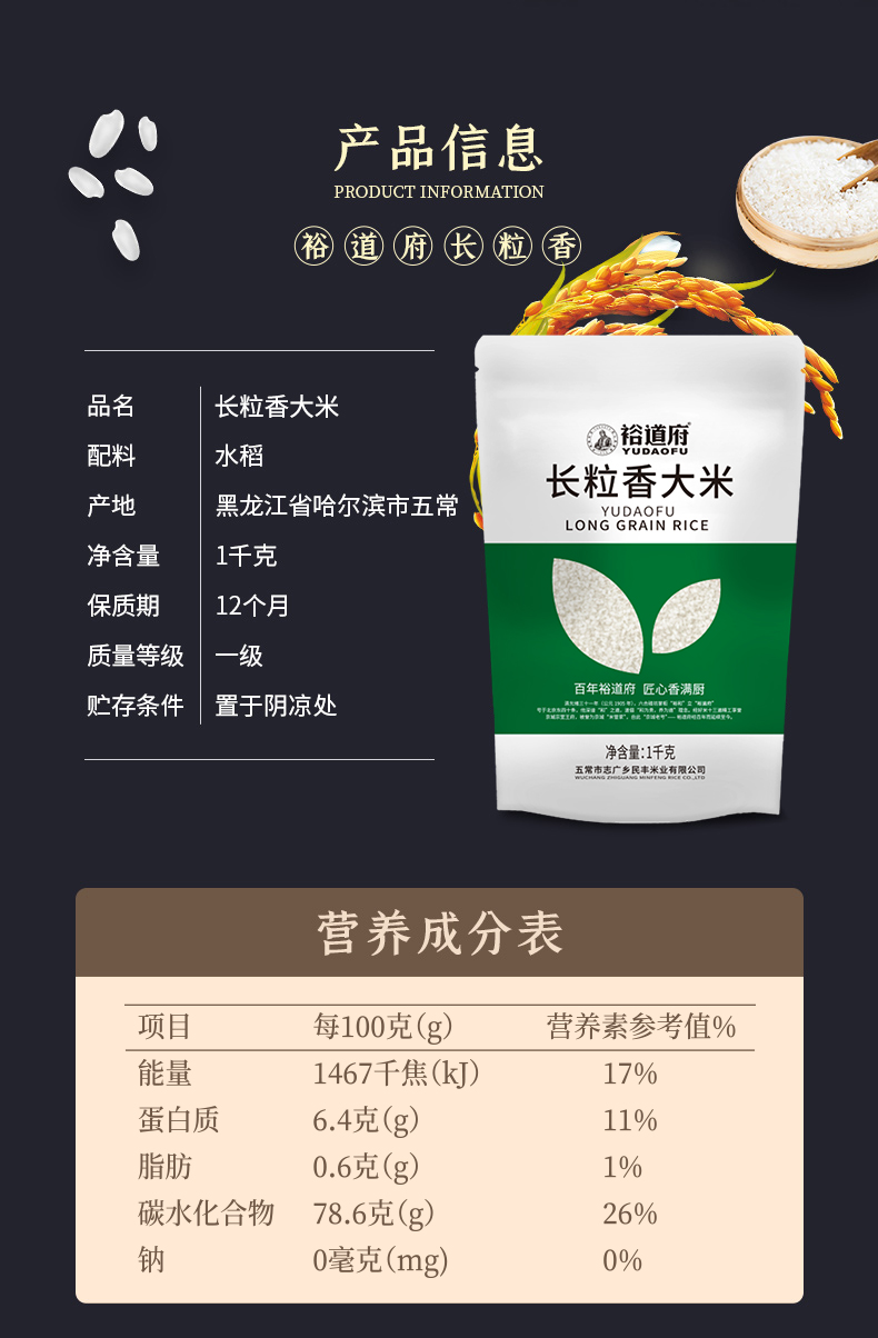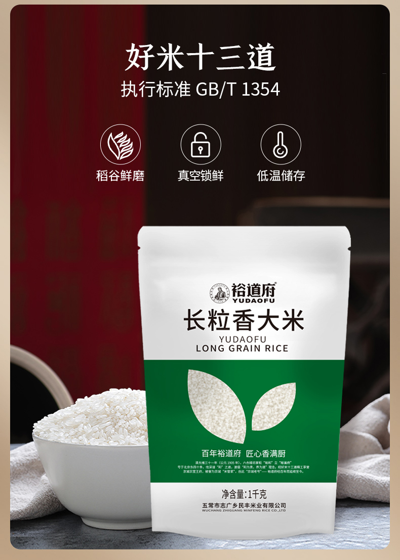 商品名称:裕道府 长粒香大米(单层袋真空装)1kg/袋 1kg