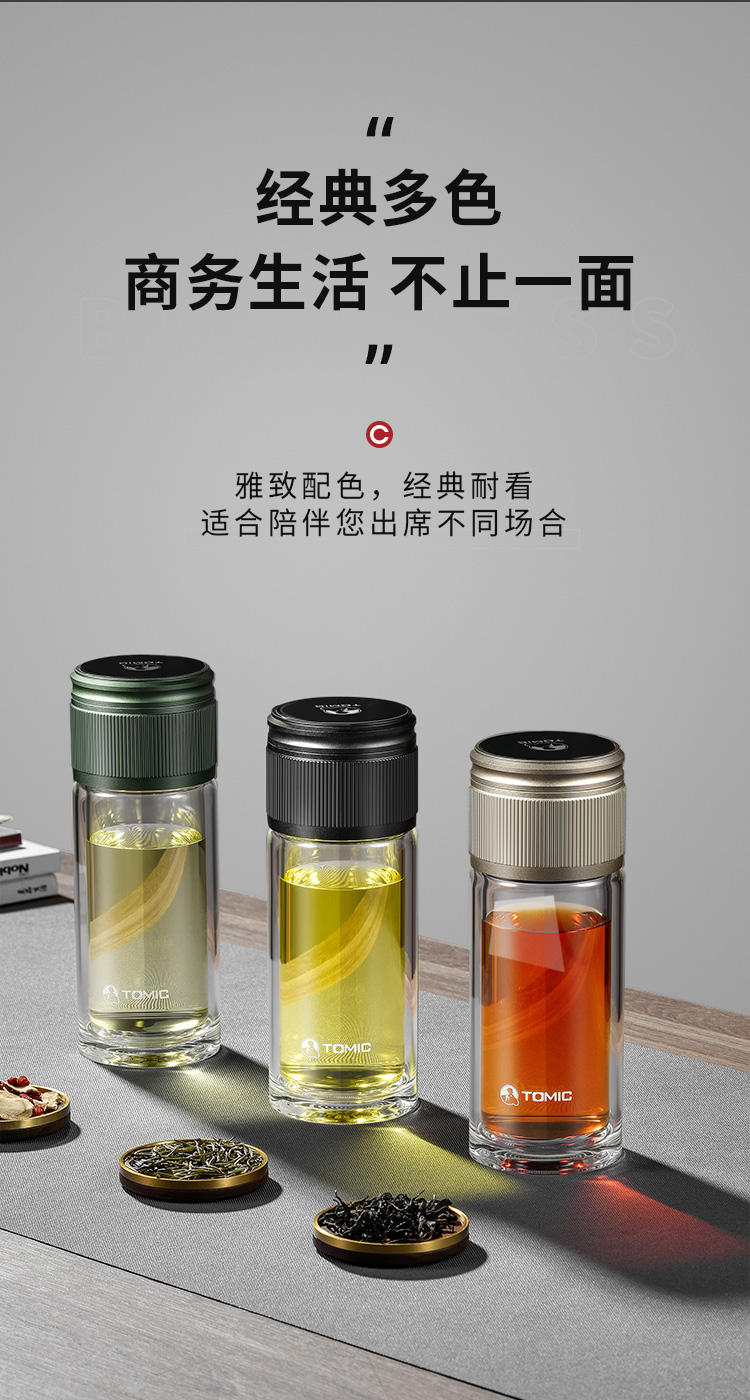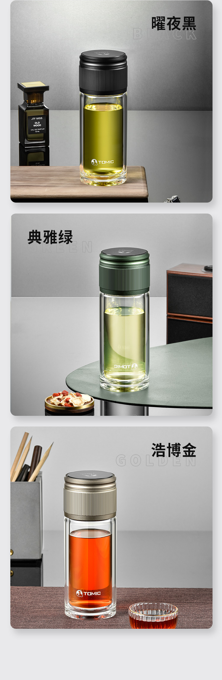 商品名称:特美刻(TOMIC) 高档玻璃杯高硼硅玻璃隔热防烫玻璃杯高颜值泡茶杯 TG80725/只 绿色