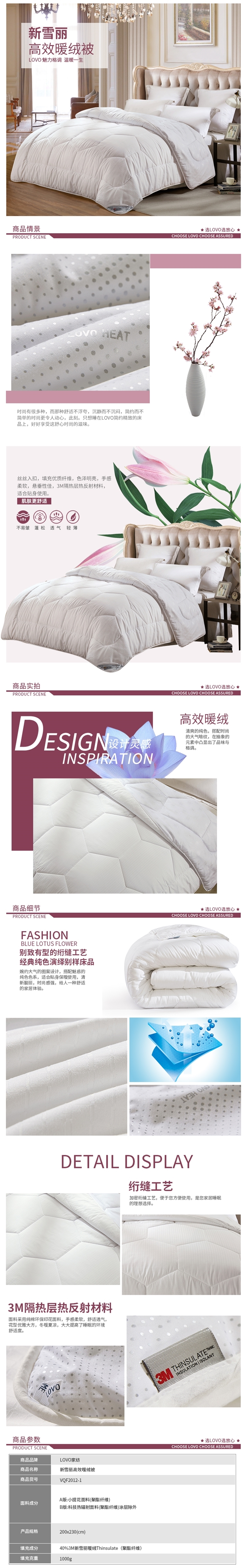商品名称:LOVO新雪丽高效暖绒被VQF2012-1 200x230(cm)白色(件) 白色
