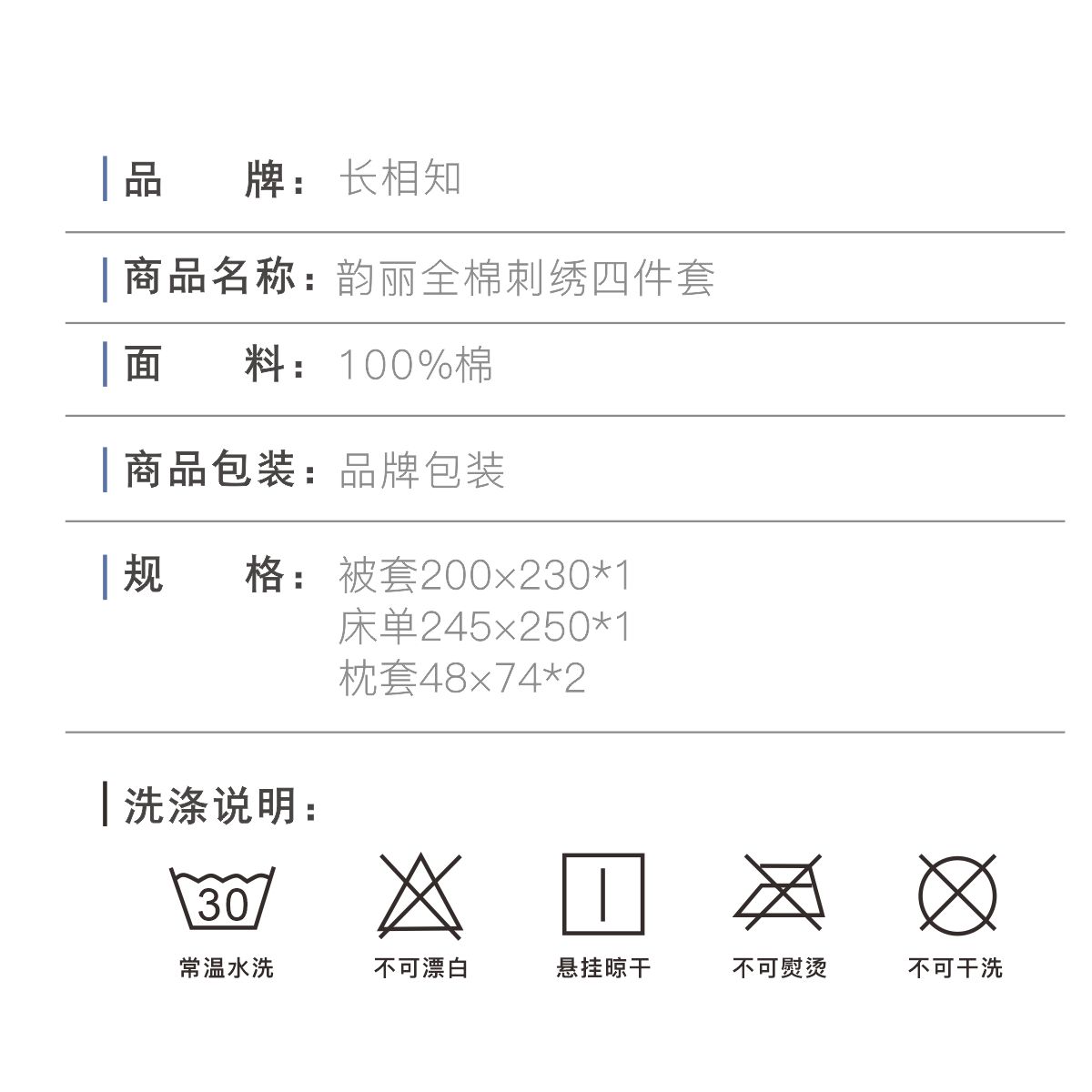 商品名称:长相知韵丽全棉刺绣四件套(单位:套) 韵丽灰 1.5/1.8m床200*230cm