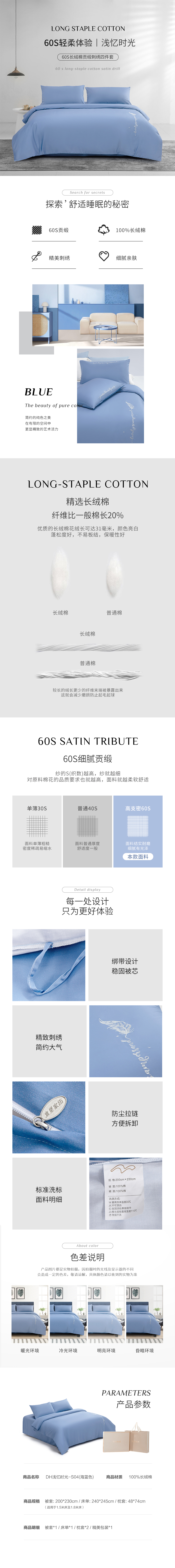 商品名称:水星家纺 浅忆时光60S长绒棉四件套(海蓝色)200cm×230cm 适用1.5米床(单位:套) 蓝色