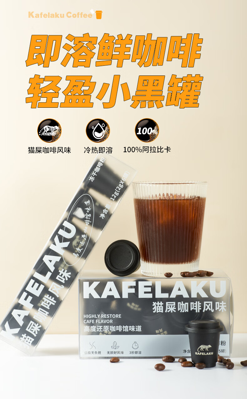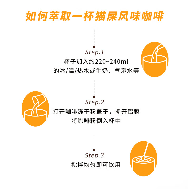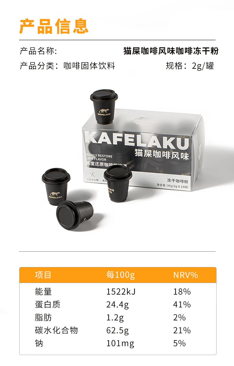 商品名称:野鼬咖啡-猫屎咖啡连锁&佑晨光-精品猫屎咖啡风味速溶冻干粉美式黑咖啡冷萃即溶 2g*15颗 棕色