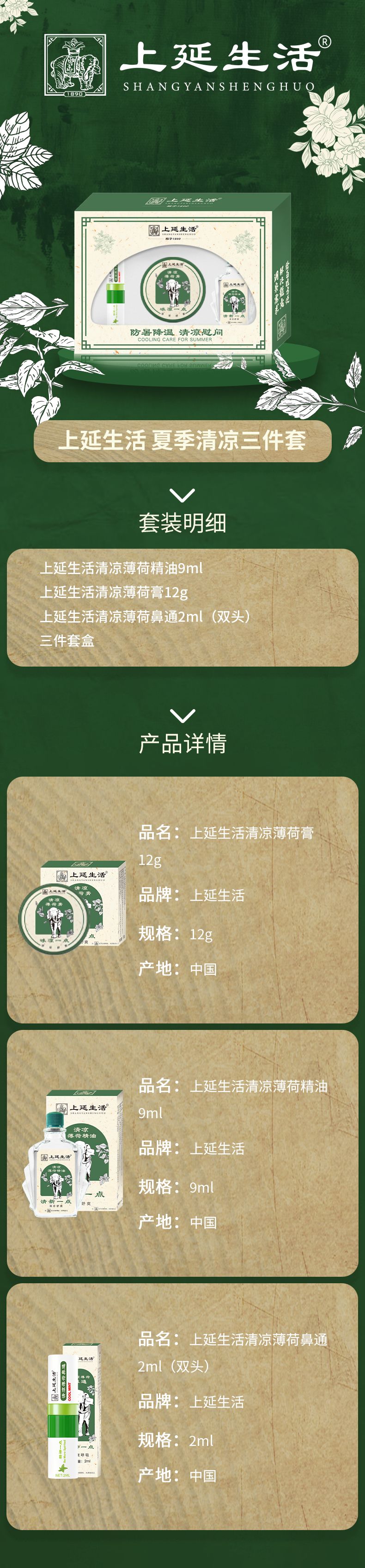 商品名称:上延生活 夏季清凉三件套(单位:套) 雾雨绿