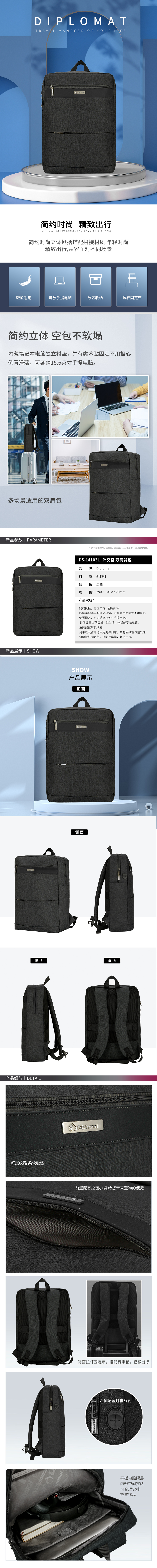 商品名称:Diplomat外交官双肩背包DS-14103L(单位:个) 黑色