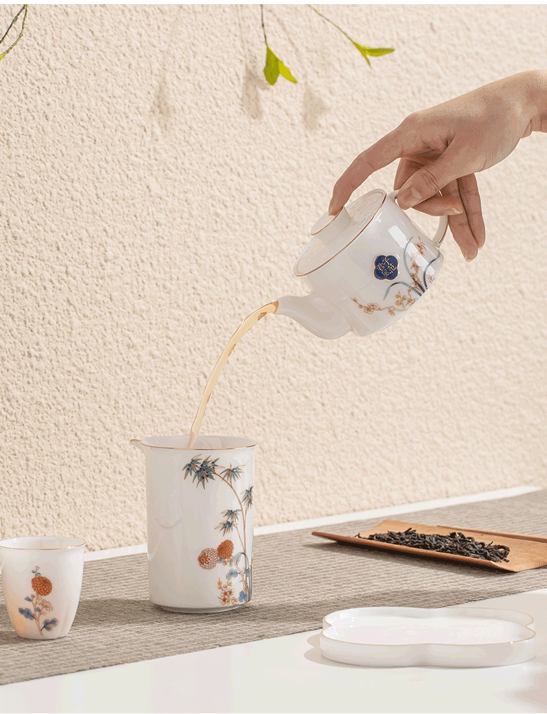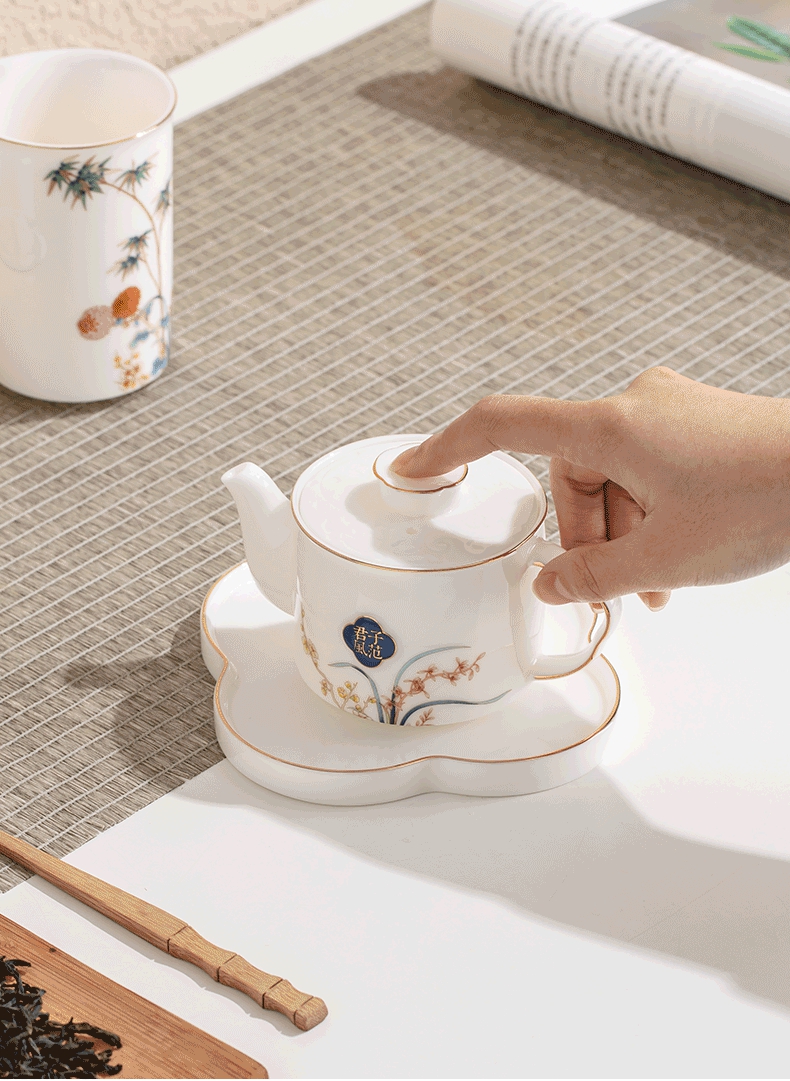 商品名称:苏氏陶瓷(SUSHI CERAMICS)君子风范功夫茶具套装一茶海4杯精致礼盒装(茶壶)(单位:套) 白色