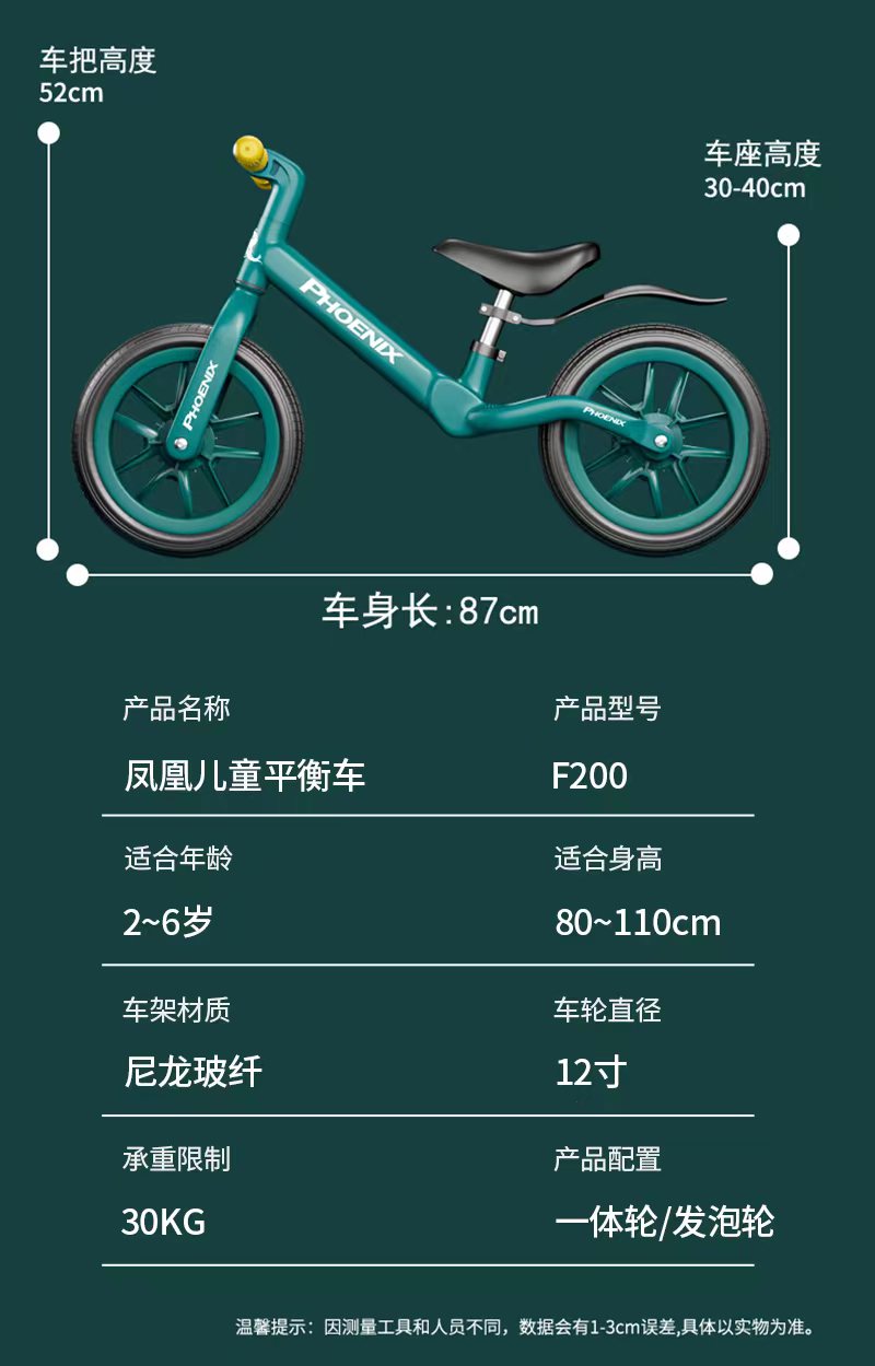 商品名称:凤凰儿童平衡车滑步车F200(单位:辆) 绿色