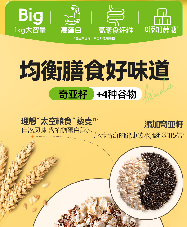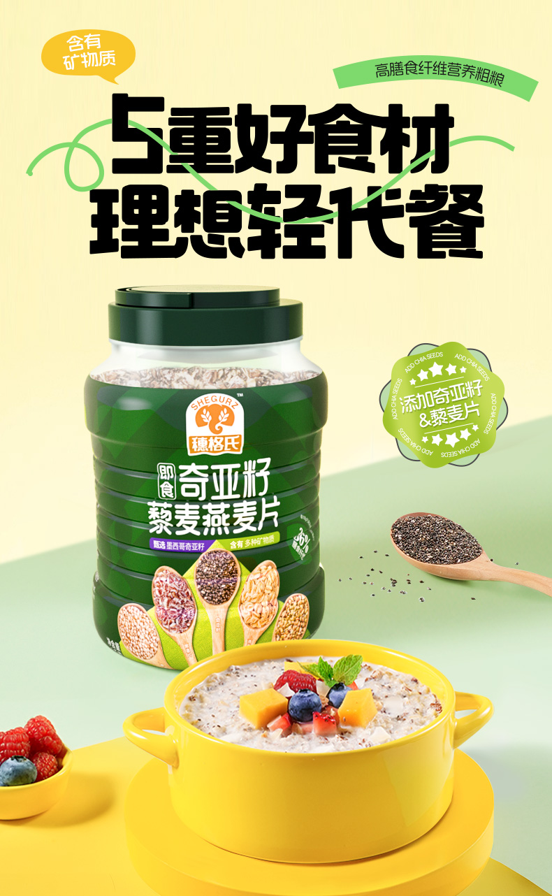 商品名称:穗格氏奇亚籽藜麦燕麦片1000g /罐(单位:罐) 绿色