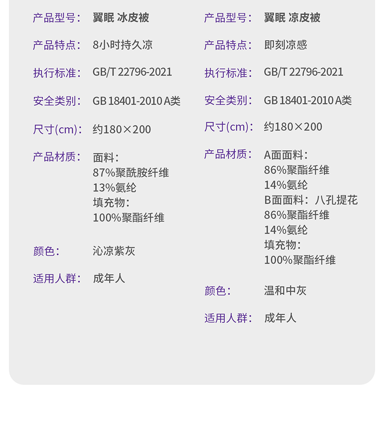 商品名称:翼眠睡眠系列凉皮被180*200cm-温和中灰 单位:条 温和中灰 180*200cm