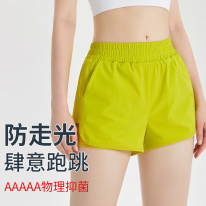 商品名称:唯卡洛 运动女短裤假两件透气宽松内衬防走光高腰外穿速干跑步健身三分裤24060 单位:件 秋香黄 2XL