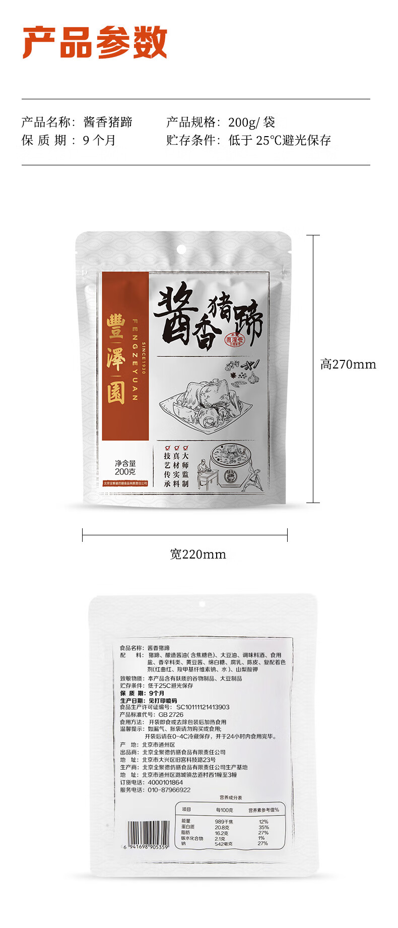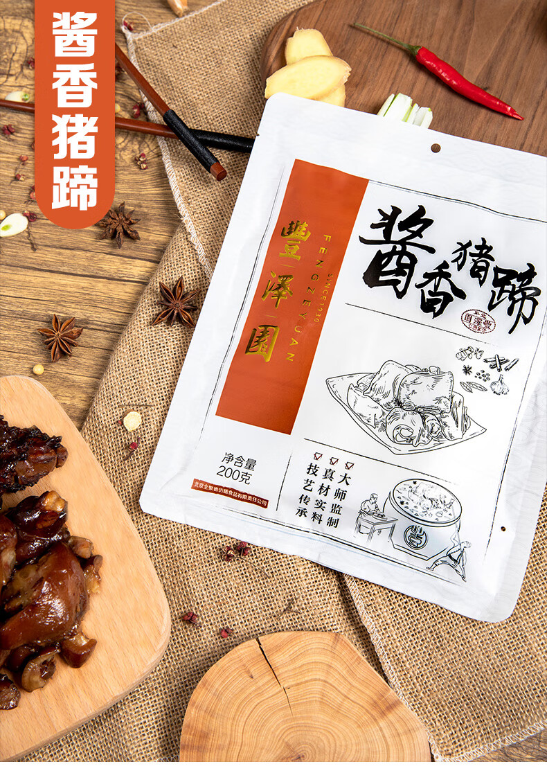 商品名称:丰泽园 熟食零食大礼包 中华老字号特产美食 休闲零食下酒菜 酱香肘子1袋+猪蹄1袋(共400g)2袋 酱香肘子1袋+猪蹄1袋(共400g)2袋