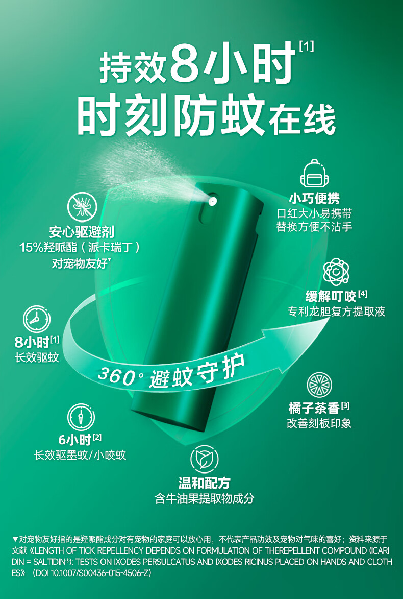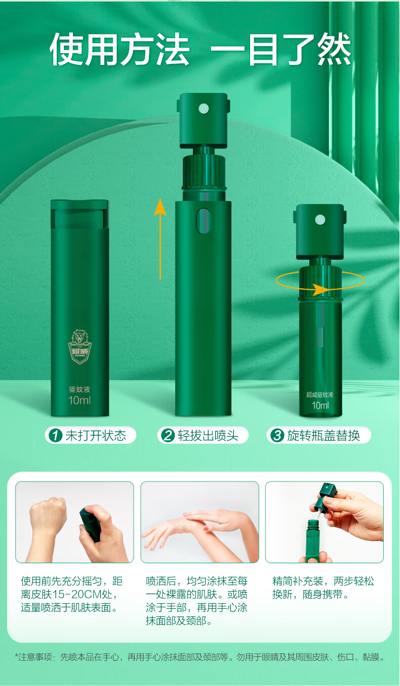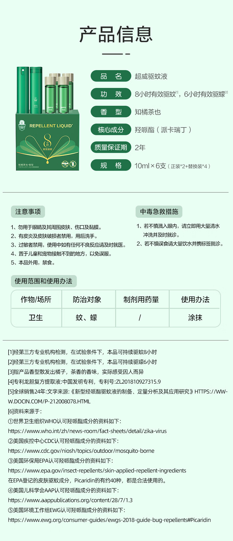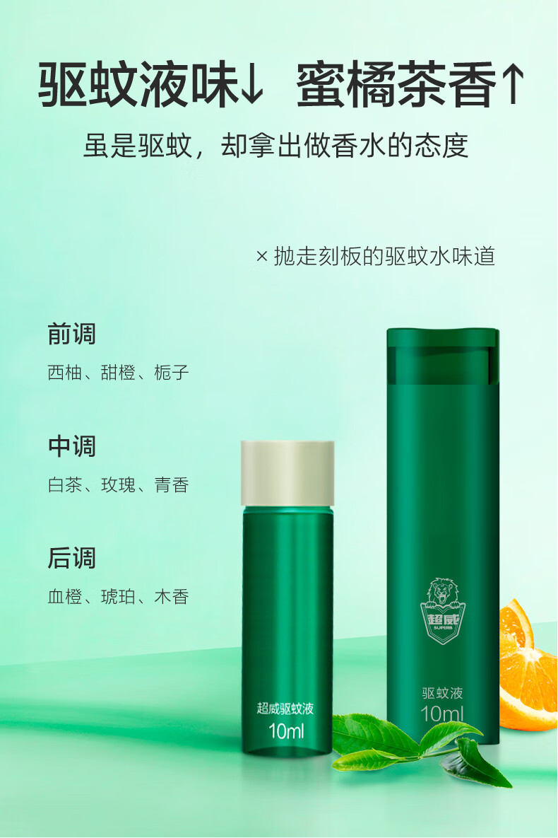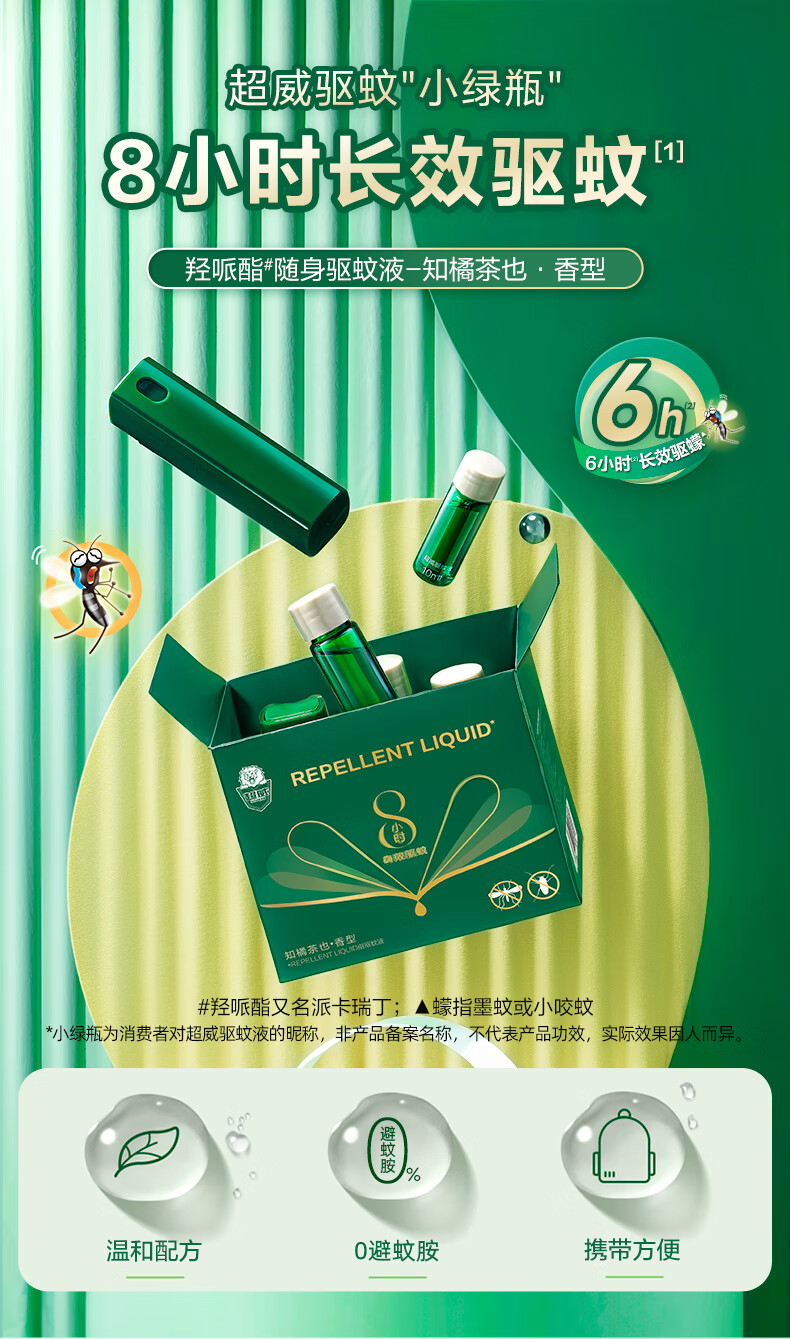 商品名称:超威(SUPERB) 驱蚊液知橘茶也10ml喷*2+10ml补*4(单位:盒) 绿色