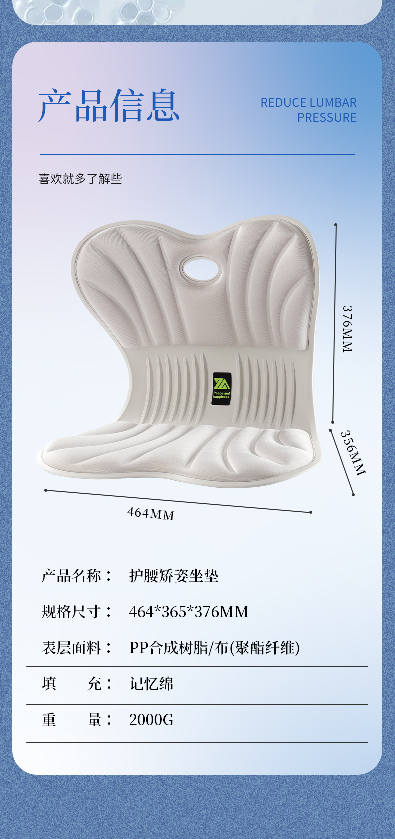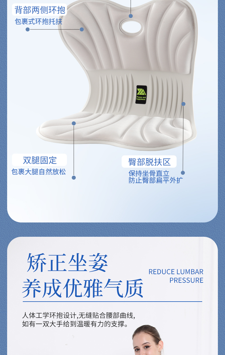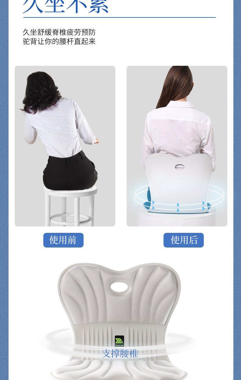 商品名称:思菲其护腰坐垫ZD501办公室久坐不累神器花瓣靠背防驼背矫正坐姿矫正器2.0kg/个 黑色