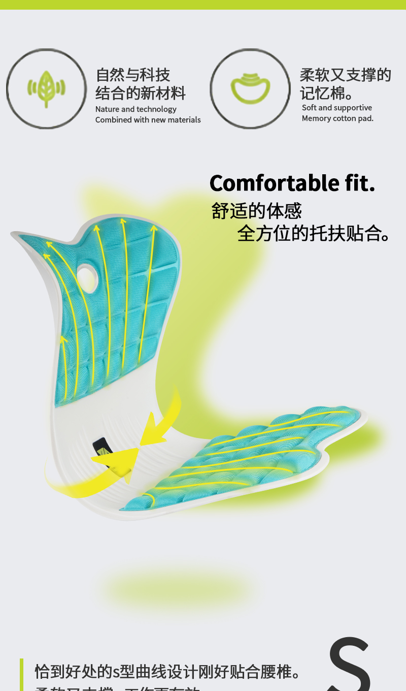 商品名称:思菲其护腰坐垫ZD402靠背一体人体工学座椅子腰靠垫办公室工位久坐神器1.2kg/个 灰色